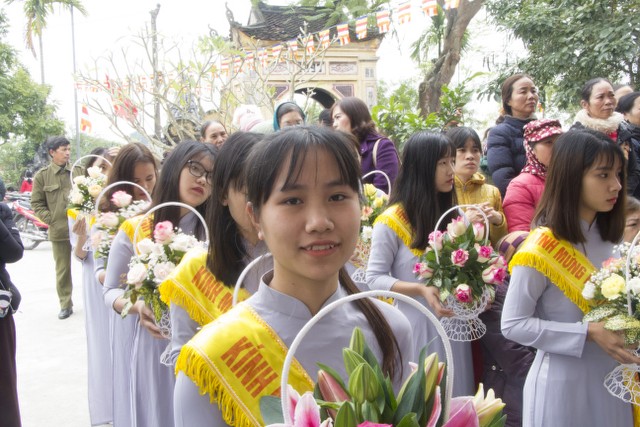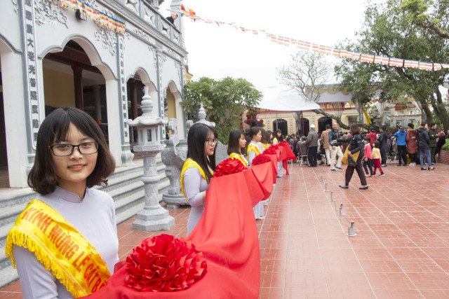 Buổi lễ vinh dự đón tiếp: ông Nguyễn Thanh Hoàn, Bí thư Đảng ủy xã Vũ Phúc; ông Lê Thanh Nghị, Phó Chủ tịch UBND xã, ông Hoàng Văn Tuân, Chủ tịch UBMTTQVN xã Vũ Phúc, đại diện chính quyền các thôn trong xã và trên 500 Phật tử về dự lễ.