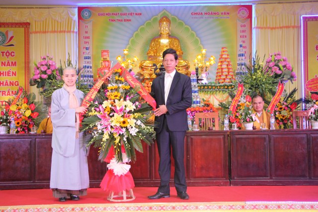 Buổi lễ vinh dự đón tiếp quý vị lãnh đạo: ông Phạm Công Tráng, Nguyên Phó Bí thư Huyện ủy, Chủ tịch UBND huyện Đông Hưng; ông Nguyễn Hữu Hưởng, Chủ tịch UBND xã; đại diện chính quyền xã Đông Cường, thôn sở tại và gần 1000 Phật tử về dự lễ.