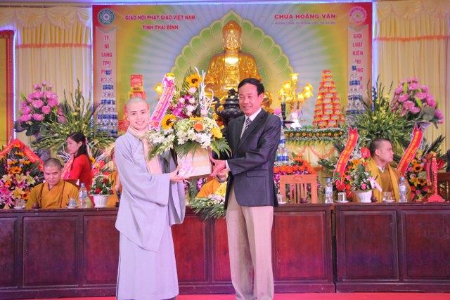 Buổi lễ có sự chứng minh, tham dự của: TT.Thích Thanh Định, UV HĐTS TƯGH, Phó ban Thường trực BTS PG tỉnh; ĐĐ.Thích Minh Thành, UV TT BTS PG tỉnh, Trưởng BTS PG Vũ Thư, ĐĐ.Thích Thanh Ân, Chánh Thư ký BTS PG tỉnh; NT.Thích Đàm Lưu, Chứng minh Phân ban Ni giới tỉnh; chư tôn đức trụ trì các tự viện trong và ngoài tỉnh.