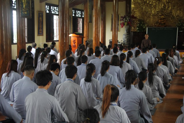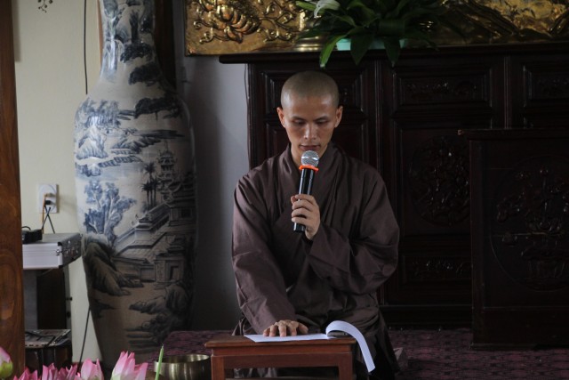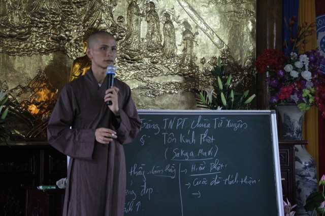 Buổi chiều, các bạn được tụng kinh Vu Lan. Sau đó, TT.Thích Thanh Định, trụ trì chùa Từ Xuyên, Trưởng ban tổ chức khóa tu đã có thời chia sẻ Phật pháp về đề tài “Thanh niên đi chùa”. Thông qua bài giảng, thầy mong muốn các bạn trẻ cần nên đến chùa, tìm hiểu về ngôi chùa và học hỏi giáo lý từ các qúy thầy, các bạn đồng tu; tránh xa những trò vui thế gian, các món dục lạc gây đau khổ cho con người.