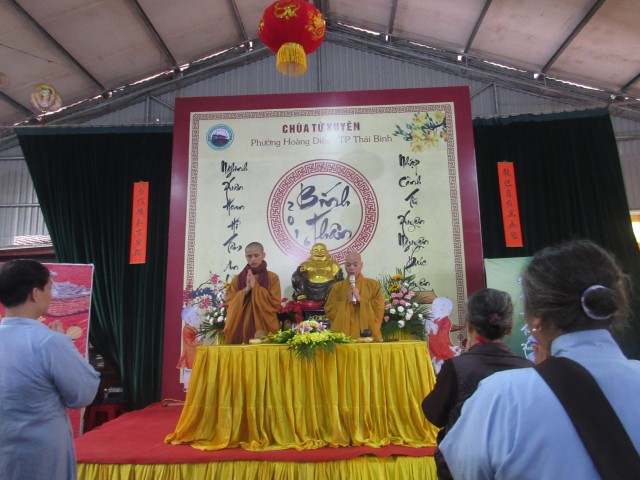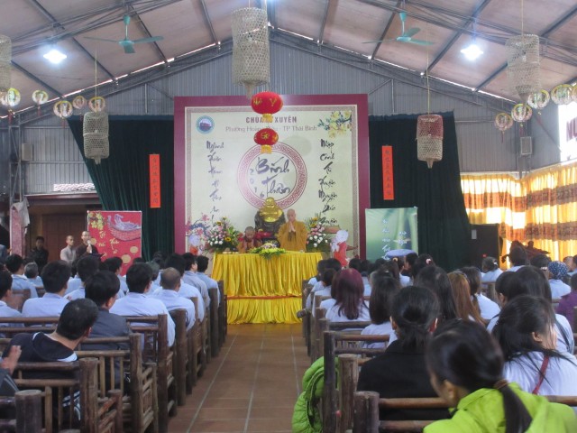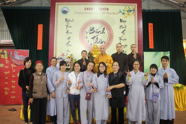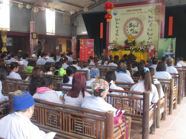 Buổi chiều, chư tôn đức cùng đạo tràng đã tụng kinh, hồi hướng cầu an cho các hội viên người khuyết tật. Cuối thời khóa, TT.Thích Thanh Định, UV HĐTS GHPGVN, Phó ban Thường trực BTS PG tỉnh Thái Bình, trụ trì chùa Từ Xuyên chia sẻ, sách tấn quý Phật tử. Mỗi người hôm nay về đây tu học là thắng duyên lớn, gieo trồng từ nhiều đời trước. Do đó, chúng ta cần tin sâu giáo lý nhân quả để làm chủ ba nghiệp, mang tình thương tới mọi người, thực hành pháp môn niệm Phật để chuyển hóa đời sống, đạt được an lạc, hạnh phúc ngay trong hiện tại và cả đời sau.
