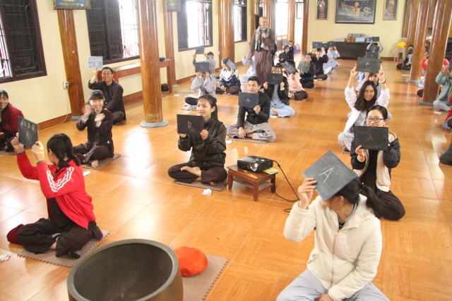 TT.Thích Thanh Định, Phó ban Thường trực BTS PG tỉnh Thái Bình trụ trì chùa đã có thời pháp thoại với chủ đề “Vui trong chính pháp”, sách tấn các bạn trẻ trước khi các bạn trở về gia đình vui xuân đón Tết. Thông qua bài giảng, quý Thầy mong mong muốn các bạn trẻ không quên tu tập, học hỏi giáo lý, tránh xa các dục lạc, vui thú thế gian để bản thân được an lạc, không gây khổ cho mình và mọi người.