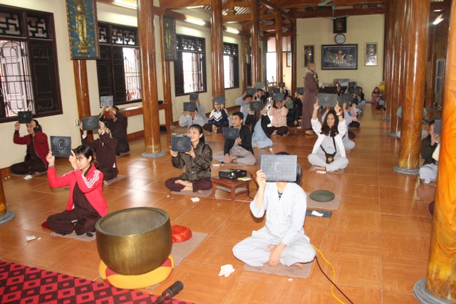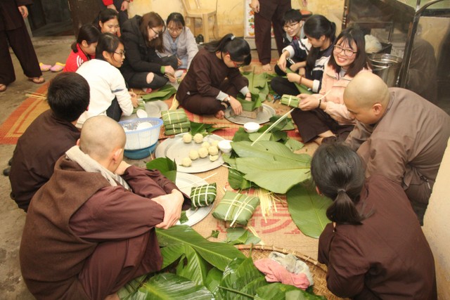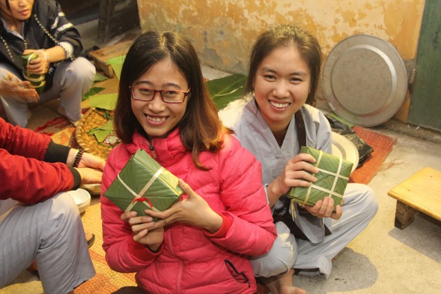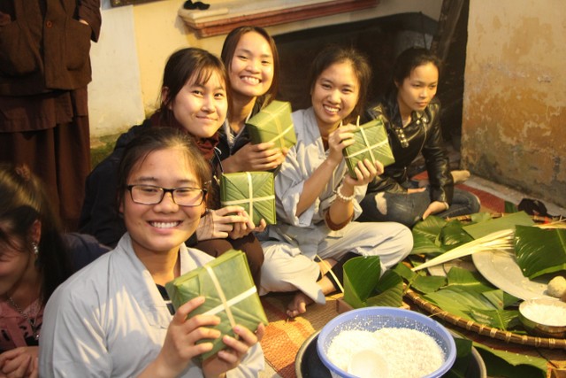 Bên cạnh đó, các bạn còn được tham gia cuộc thi giáo lý “Rung chuông vàng” với những câu hỏi liên quan đến Tam Bảo và cuộc đời đức Phật; thi nấu bánh chưng chay giữa các gia đình tâm linh.
