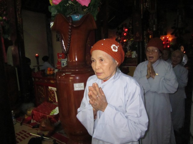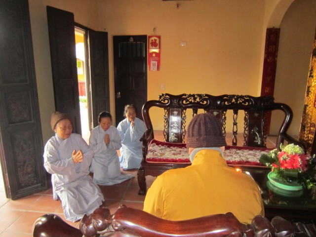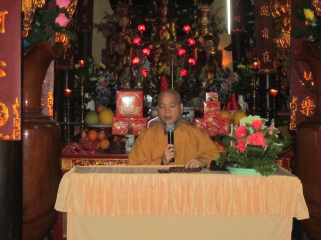 Buổi chiều, Thượng tọa cùng các Phật tử tụng kinh A Di Đà và niệm Phật kinh hành. Cuối ngày tu, quý thầy đã có đôi lời sách tấn quý Phật tử cần chuyên nhất niệm Phật, cầu sinh Tây Phương cực lạc.