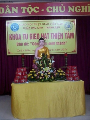 Ngày 6/6/2014 (nhằm ngày 9/5/Giáp Ngọ), chùa Ứng Linh – Thanh Bản đã long trọng tổ chức khóa tu “Gieo hạt thiện tâm- lần thứ hai” với chủ đề “Công đức sinh thành” với sự tham gia rất đông đảo của các bạn trẻ, thanh thiếu niên trong và ngoài xã. Qua khóa tu một ngày này, chắc chắn rằng các bạn sẽ có thêm những hiểu biết về đạo Phật, trở thành những người con hiếu thảo và là những mầm xanh của Phật giáo nước nhà.