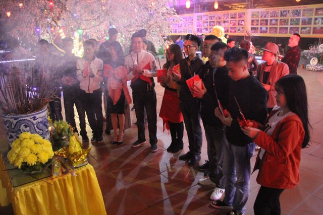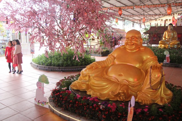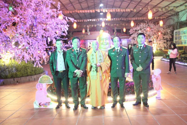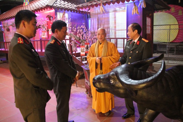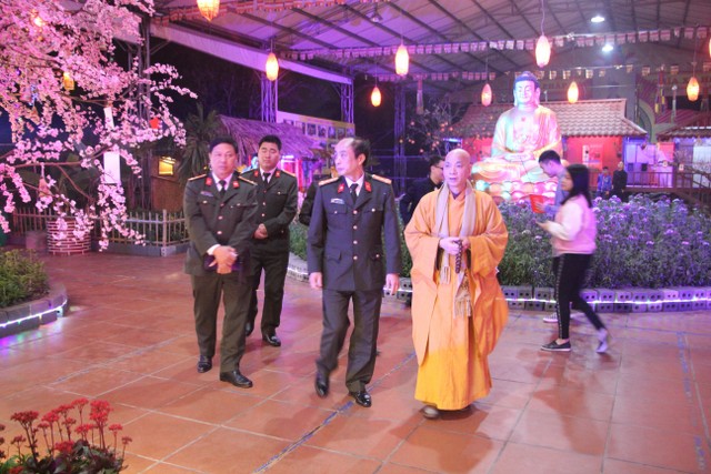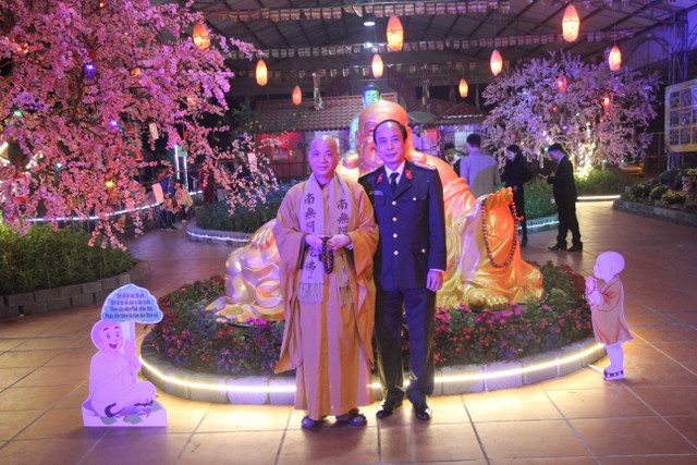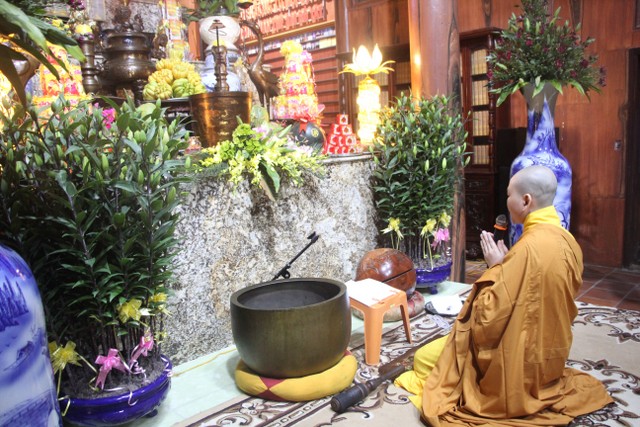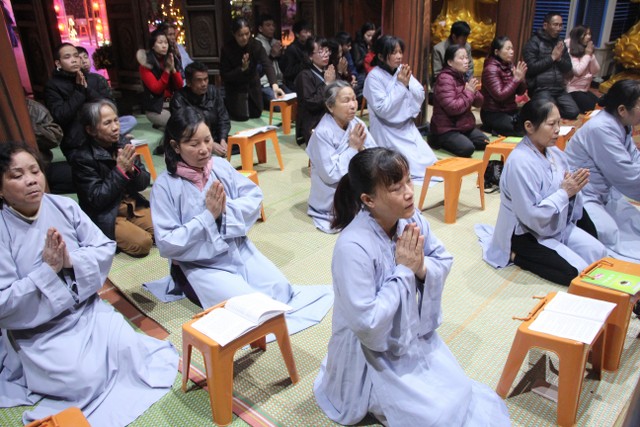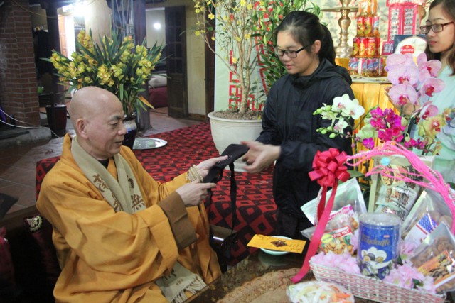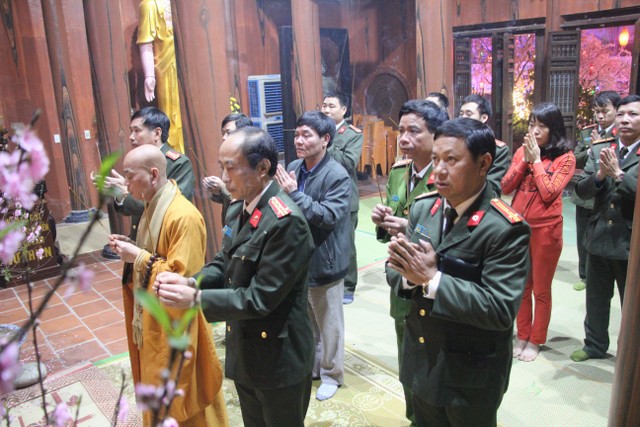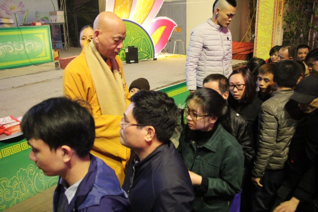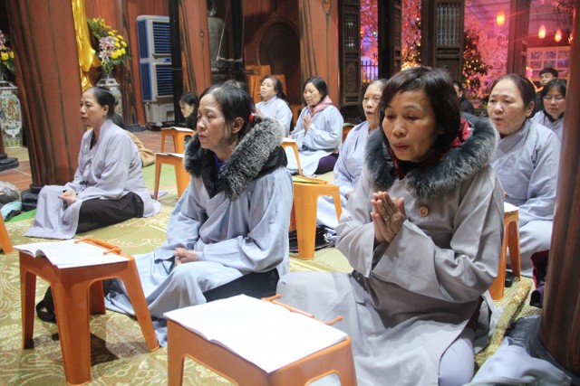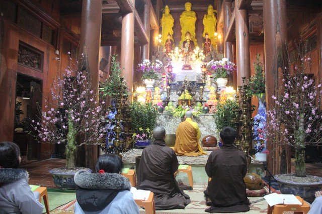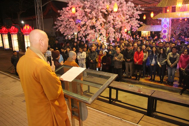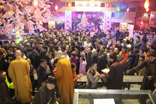 Sau chương trình khóa lễ tụng kinh cầu an, đông đảo nhân dân đã lễ Phật, du xuân, vãn cảnh chùa trong tiết trời ấm áp. Và thời khắc giao thừa đã đến cả đại chúng chắp tay trang nghiêm lắng nghe Thượng Tọa trụ trì Thích Thanh Đinh tuyên đọc thư chúc tết của Đức Pháp Chủ HĐCM GHPGVN gửi tới Tăng Ni Phật tử trong và ngoài nước. Tiếp đó là những tràng pháo tay dòn dã, những màn pháo sáng rực đón chào một mùa xuân mới đã về. Một phần không thể thiếu trong đem giao thừa đó chính là nhận phần quà pháp bảo từ Thượng tọa trụ trì, dòng người trang nghiêm xếp hàng, lần lượt đến nhận lộc đầu xuân trong niềm hoan hỉ và an lạc.