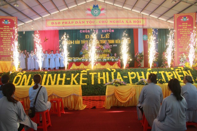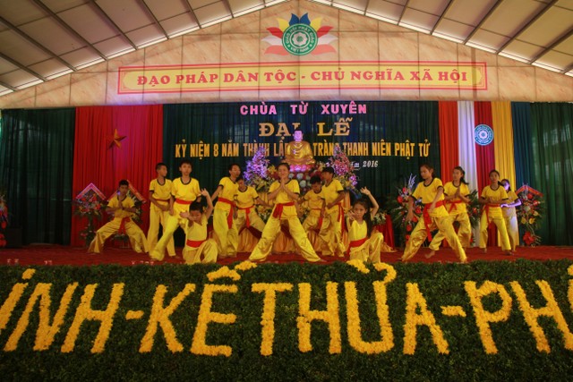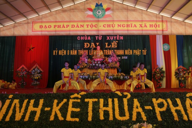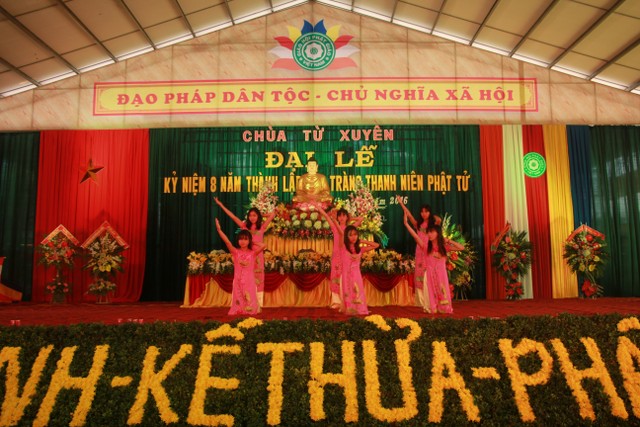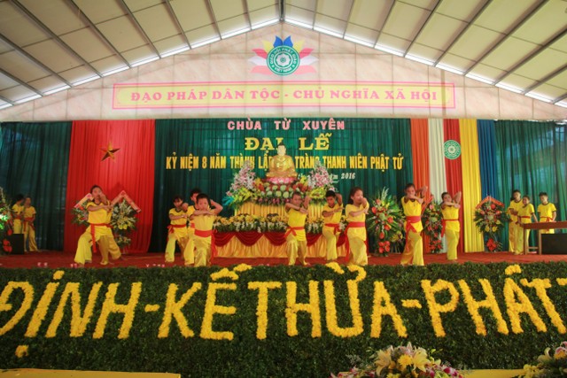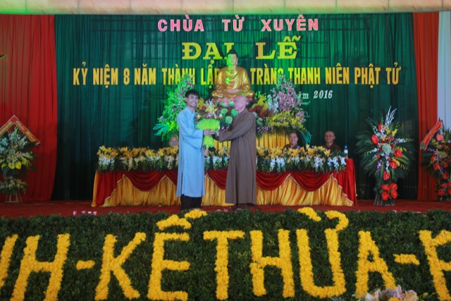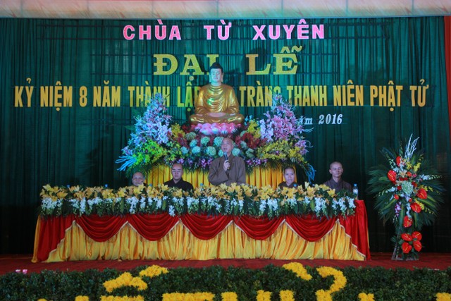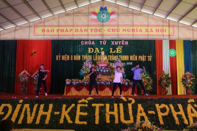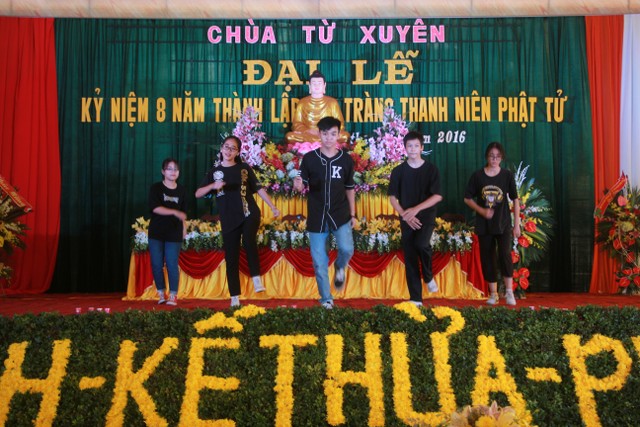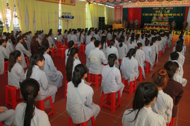 Buổi chiều, các bạn trẻ tham dự lễ kỷ niệm 8 năm ngày thành lập đạo tràng thanh niên Phật tử chùa Từ Xuyên. Đến chứng minh buổi lễ có: Thượng tọa trụ trì Thích Thanh Định; cùng chư tôn đức Tăng Ni trú xứ các tự viện trong tỉnh. Buổi lễ có sự tham dự của đại diện đạo tràng Mai Tâm Tĩnh; các câu lạc bộ các chùa Văn Môn, Phúc Minh, Hoàng Kim, Từ Vân, Đại Bi; Thái Cao, Hoằng Văn.