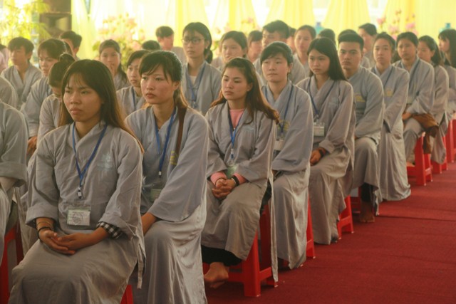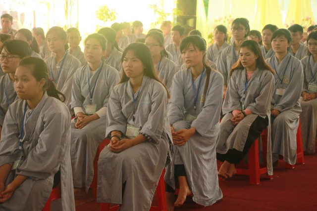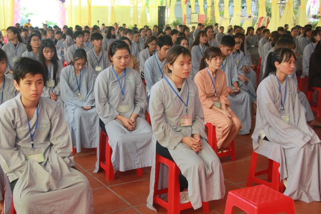 Ban chủ nhiệm đạo tràng đã đọc báo cáo tổng kết trong năm qua, đề ra phương hướng trong thời gian tới, đặc biệt là chú trọng vào chương trình tu học tối thứ năm hàng tuần, giới thiệu về hoạt động của đạo tràng để nhiều bạn cùng đến chùa tu tập, tổ chức các buổi từ thiện, phóng sinh, cắm hoa gây quỹ, tham gia chấp tác công quả khi nhà chùa có khóa tu, Đại lễ… Với tình yêu thương, quan tâm hoằng pháp tới thế hệ trẻ, Thượng tọa trụ trì đã có lời đạo từ, nhắc nhở các bạn trong đạo tràng cần phát huy tinh thần tu học của các anh chị khóa trước, đoàn kết gắn bó, yêu thương nhau để cùng nhau tu học, góp phần tu dưỡng thân tâm, trau dồi đạo đức và đưa Phật pháp đến với mọi người. Nhân dịp này, đạo tràng đã ra mắt ban chủ nhiệm mới với 12 thành viên. Không khí trang nghiêm nhưng không kém phần sôi động, mang lại cho các bạn trẻ một ngày tu ấn tượng, lý thú. Khóa tu kết thúc lúc 17h00 cùng ngày trong sự hoan hỷ của quý thầy, các anh chị tình nguyện viên và các bạn thiện sinh tham gia.