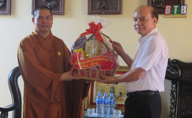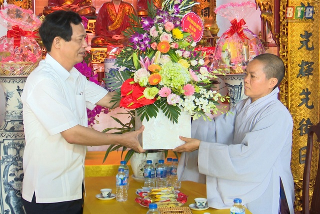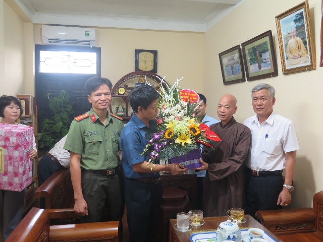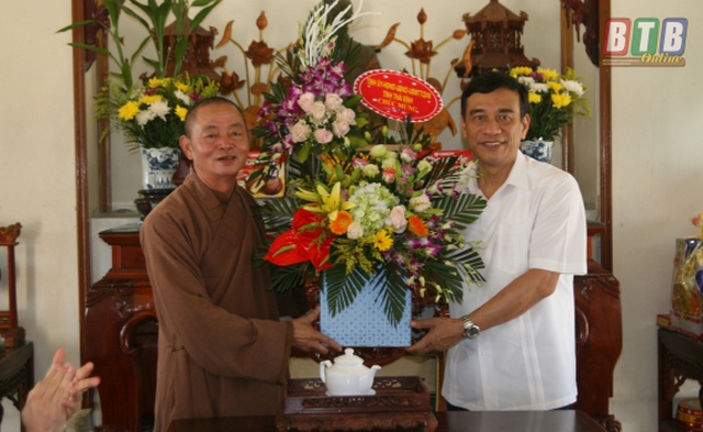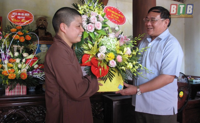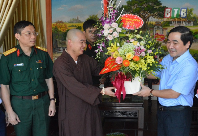Ông Đặng Thanh Giang, Uỷ viên BTV Tỉnh ủy, Chủ tịch UB MTTQVN tỉnh; ông Hoàng Văn Thành, Tỉnh ủy viên, Phó Bí thư Thường trực Thành ủy cùng đại diện lãnh đạo Tp.Thái Bình, Công an Tp.Thái Bình đã đến thăm, tặng quà chúc mừng TT.Thích Thanh Định, UV HĐTS, Phó ban Thường trực Ban Trị sự PG tỉnh, trụ trì chùa Từ Xuyên (P.Hoàng Diệu); TT.Thích Trí Sử, UVTT Ban Trị sự PG tỉnh, Trưởng BTS PG thành phố, trụ trì chùa Sùng Nghiêm (P.Hoàng Diệu).