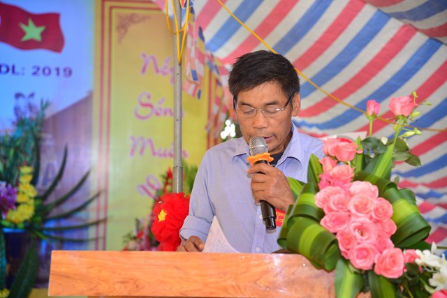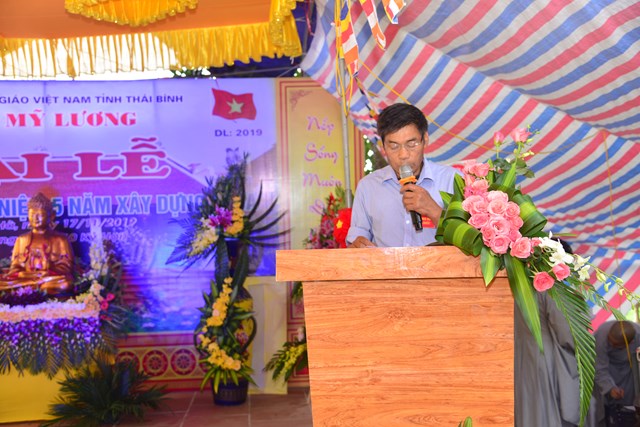 Ông: Nguyễn Văn Phú – Bí thư chi bộ thôn Lường báo cáo kết quả 5 năm đi vào hoạt đông của chùa Mỹ Lương