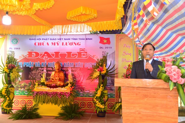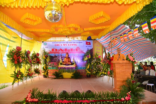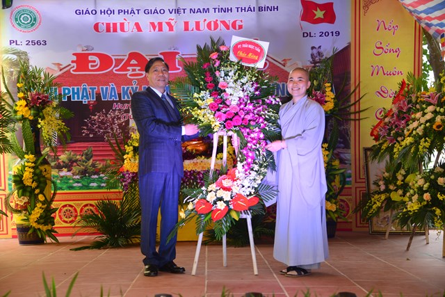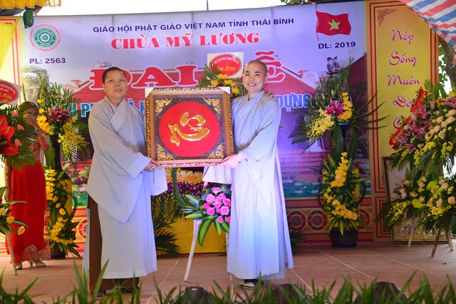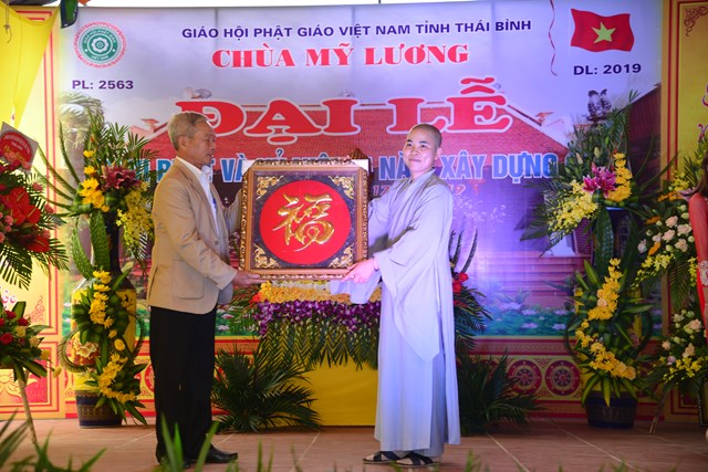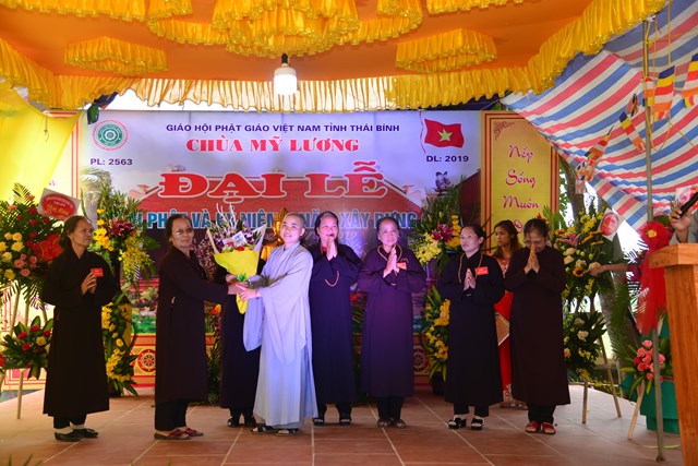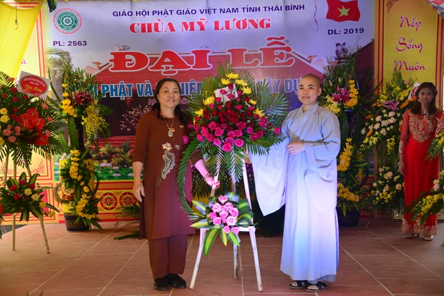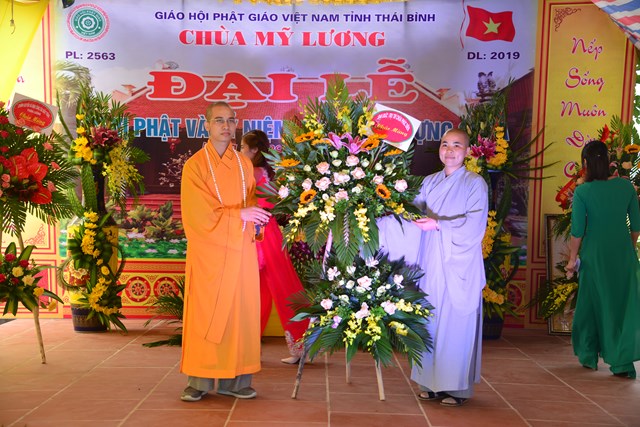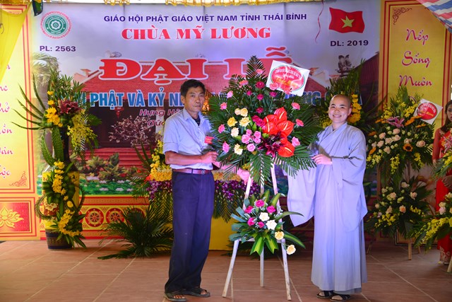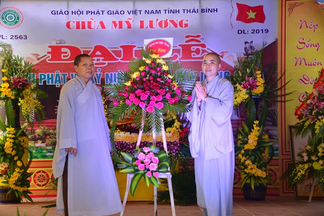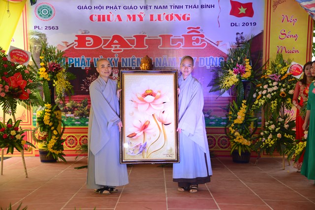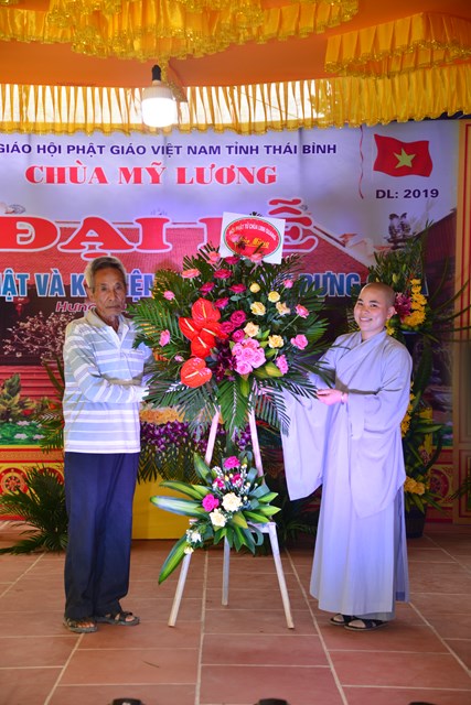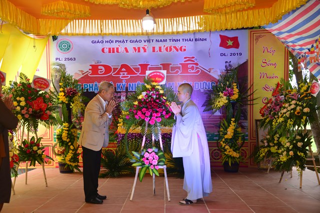Nhân dịp kỷ niệm 5 năm xây dựng chùa Mỹ Lương, sư thầy Thích Diệu Minh – Trụ trì chùa Mỹ Lương đã đón nhận những lẵng hoa tươi thắm chúc mừng của chư tôn đức Tăng Ni, thầy nghiệp sư, chính quyền các cấp, các cơ quan ban ngành đoàn thể, Phật tử gần xa và nhân dân địa phương.