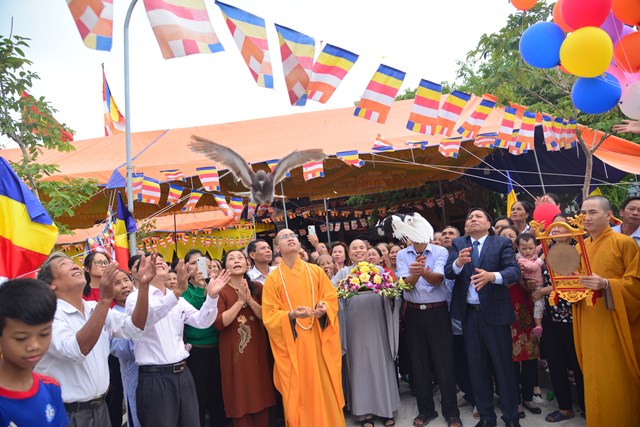 Kết thúc buổi lễ, chư tôn đức chứng minh và đại diện chính quyền địa phương đã tổ chức lễ phóng sinh, thả chim bồ câu, thả bóng bay cầu nguyện thế giới hòa bình, chúng sinh an lạc.