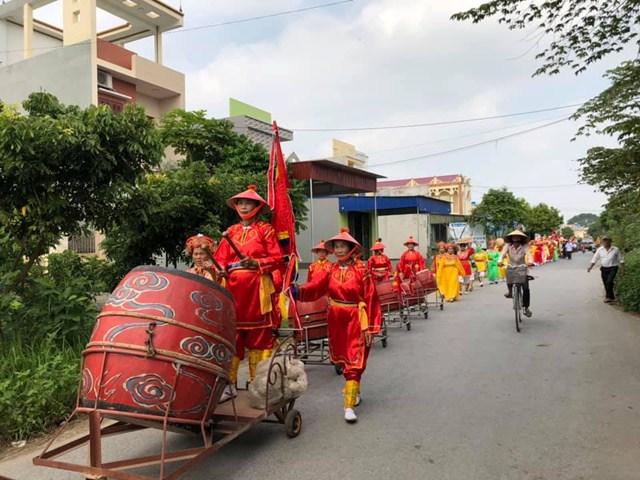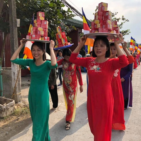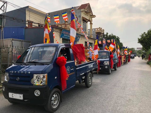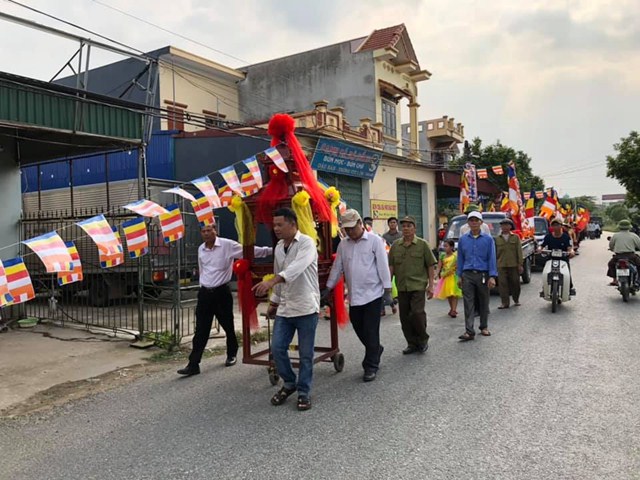 Phật tử và nhân dân tổ chức lễ rước tượng Phật về chùa Mỹ Lương
