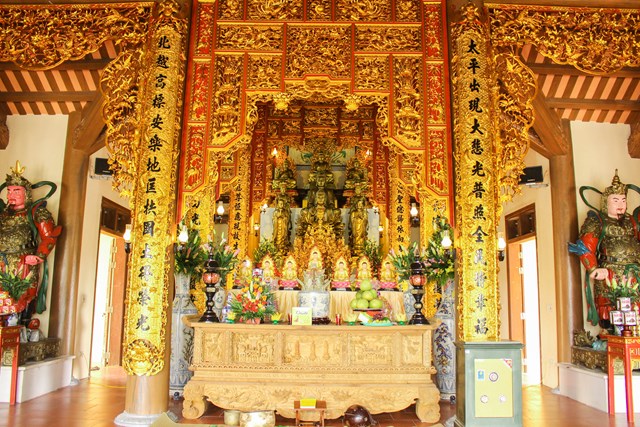 Nhân dịp này, Chư tôn đức Tăng trong chốn trụ xứ cùng Phật tử và nhân dân đã làm lễ dâng hương, cầu nguyện Quốc thái, Dân an và lễ trì chú, an vị tượng Phật Di Lặc bằng đá quý tại phía trước cửa chính điện của chùa trong không khí đầy hỷ lạc, ấm tình đạo vị.