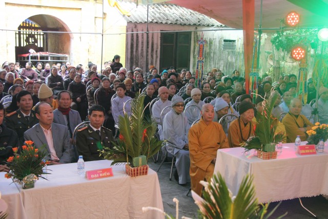 Toàn thể đạo tràng được lắng nghe những lời khai mạc của Đại Đức tân trụ trì tại buổi lễ. Đại Đức đã bày tỏ niềm tri ân sâu sắc đối với Chư Tôn đức HĐTS T.Ư GHPGVN, chư tôn đức lãnh đạo GHPGVN tỉnh, BTS Phật giáo TP.Thái Bình đã tin tưởng, tín nhiệm và giao phó và giữ trọng trách trụ trì chùa Trung (P.Đề Thám TP.Thái Bình).