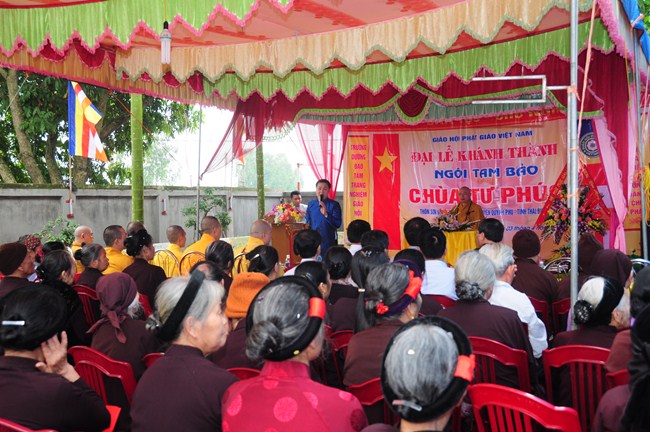 Trước khi kết thúc buổi lễ, Chư tôn đức đã cùng chính quyền địa phương cử hành nghi lễ niêm hương, bạch Phật và cắt băng khánh thành ngôi Đại hùng bảo điện chùa Tư Phúc trong niềm hân hoan, phấn khởi của đồng bào Phật tử và nhân dân địa phương.