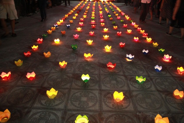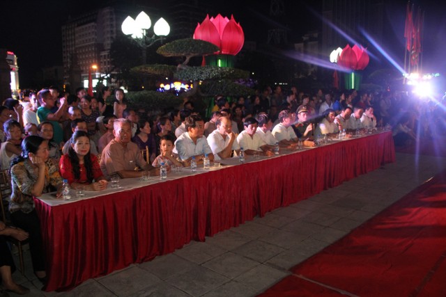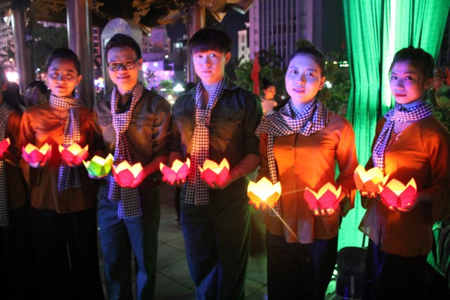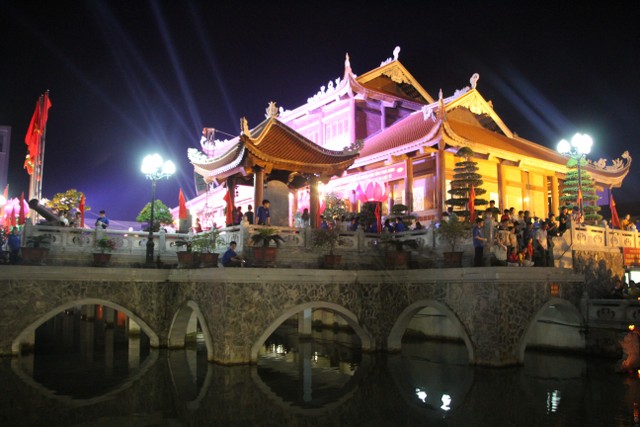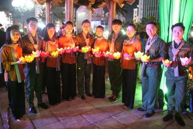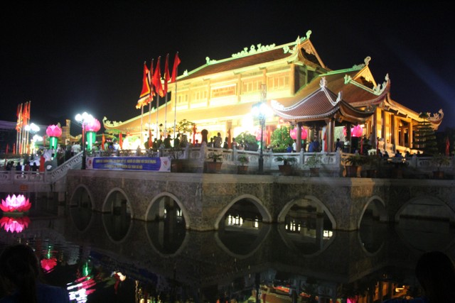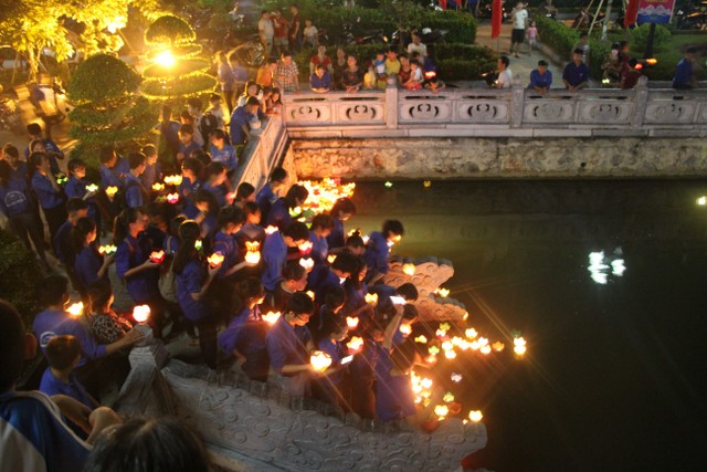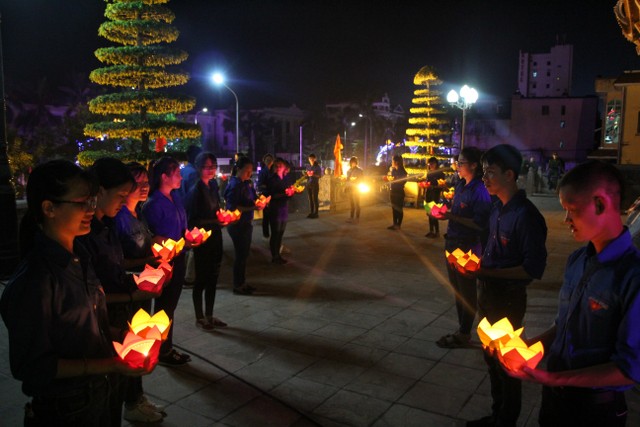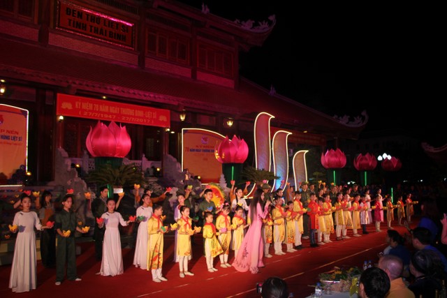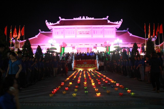 Tối cùng ngày, chương trình nghệ thuật “Tuổi trẻ theo bước chân những người anh hùng” do Tỉnh Đoàn Thái Bình tổ chức với sự tham dự của đại diện lãnh đạo chính quyền tỉnh, TP.Thái Bình thân nhân bà mẹ Việt Nam anh hùng, gia đình liệt sỹ, thương bệnh binh trên địa bàn TP.Thái Bình cùng đông đảo nhân dân, thanh niên – học sinh – sinh viên cùng về tham dự. Kết thúc chương trình, qúy vị đại biểu cùng nhân dân và các bạn trẻ đã thả hoa đăng tại hồ bán nguyệt trước khuôn viên đền thờ, cầu nguyện anh linh các anh hùng liệt sỹ sớm sinh về Cực Lạc, tỉnh nhà giàu mạnh, nhân dân no ấm.