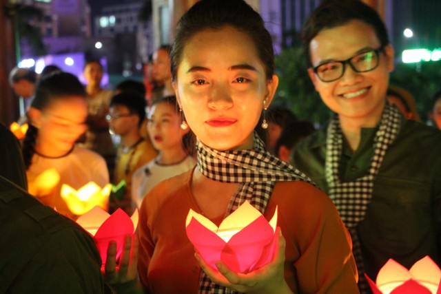 Tới dự và tham gia tình nguyện phục vụ Đại lễ, cô giáo Bùi Thị Kim Tuyến, Bí thư Đoàn Thanh niên Trường THPT Lê Qúy Đôn cho biết: “Khung cảnh buổi lễ hôm nay rất trang nghiêm và lộng lẫy. Con rất vinh dự và tự hào khi đây là lần thứ hai được tham dự đêm hoa đăng tưởng niệm đầy ý nghĩa này. Con rất xúc động khi dâng hương trong đền thờ và thả hoa đăng để hồi hướng cho các bà mẹ Việt Nam anh hùng và các liệt sỹ đã hy sinh vì quê hương đất nước. Con ý thức mình cần cố gắng, rèn luyện, học tập của, để xứng đáng với sự hy sinh của cha anh”.