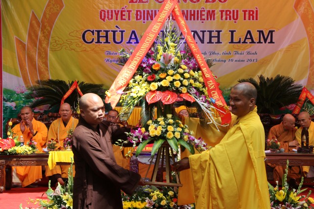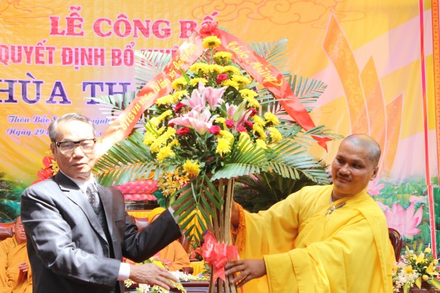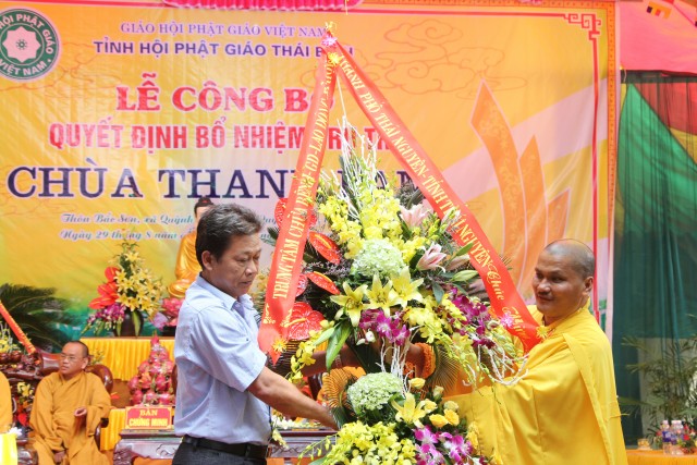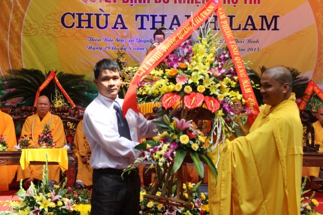 Nhân dịp này chư tôn đức cùng lãnh đạo các cơ quan ban ngành tặng hoa chúc mừng ĐĐ.Thích Minh Thành, tân trụ trì chùa Thanh Lam.