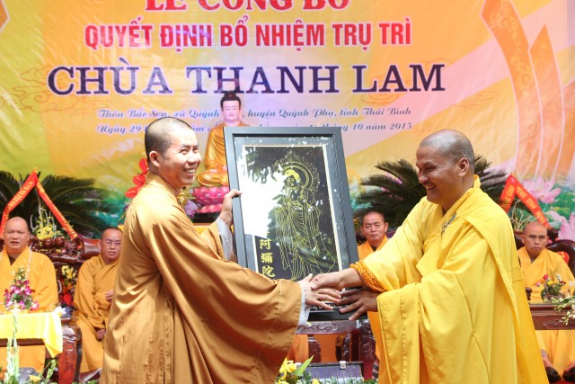 Ngày 29/08/Ất Mùi (tức 11/10/2015) tại thôn Bắc Sơn, xã Quỳnh Thọ, huyện Quỳnh Phụ, tỉnh Thái Bình long trọng tổ chức lễ công bố quyết định bổ nhiệm trụ trì Thanh Lam.