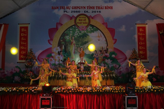 Tối cùng ngày, một chương trình văn nghệ Phật giáo đặc sắc đã được diễn ra. Tham dự chương trình là các đoàn Phật tử một số chùa trong tỉnh như: chùa Tây Khánh (Kiến Xương), chùa Bùi (Hưng Hà), chùa Hoằng Văn (Đông Hưng), chùa Thánh Long (TP.Thái Bình)…. Các Phật tử có những lời ca tiếng hát, điệu múa dâng lên cúng dường Tam Bảo và kính mừng Đại lễ Phật đản được diễn ra vào sáng mai 21/05.