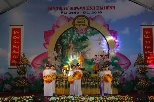 Tối ngày 20/05/2016 (14/04/Bính Thân), tại chùa Thánh Long (P.Kỳ Bá, TP.Thái Bình), long trọng tổ chức Lễ diễu hành xe hoa và chương trình văn nghệ kính mừng Đại lễ Phật đản PL.2560 – DL.2016.