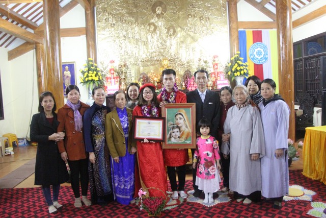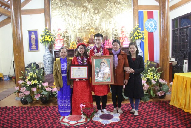 Kết thúc buổi lễ, chư tôn đức và toàn thể đạo tràng đã cử hành khóa lễ cầu an, ngưỡng nguyện Tam Bảo gia hộ cho cuộc sống gia đình đôi tân hôn được bình an, hạnh phúc. Hai bên gia đình cảm tạ quý Thầy và không quên nhắc nhở: “Các con hãy ghi nhớ những lời quý Thầy đã chỉ bảo ngày hôm nay, lấy đó làm phương châm sống, cư xử với nhau theo đúng bổn phận của người con Phật và giữ gìn nề nếp gia phong. Đó cũng là mong ước lớn nhất của các bậc làm cha, làm mẹ”.
