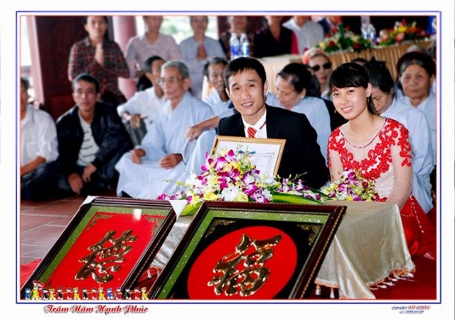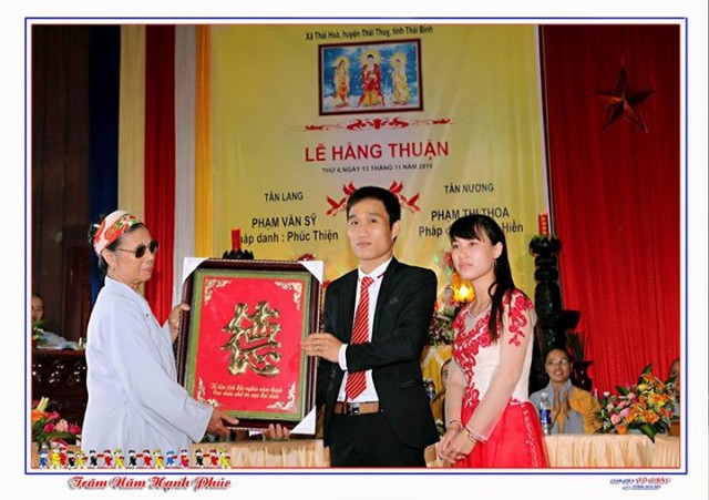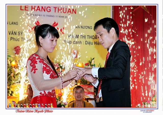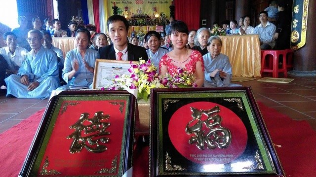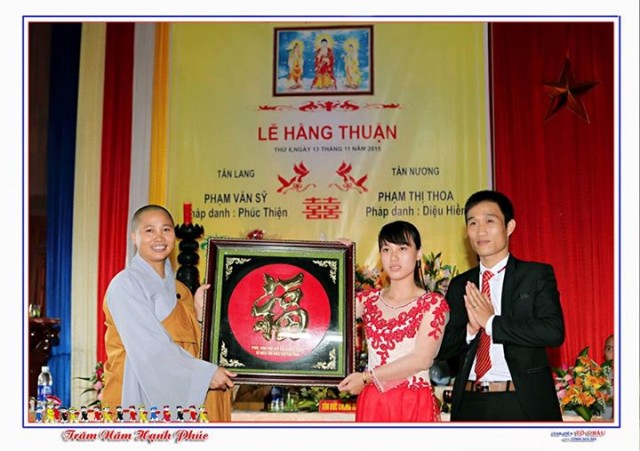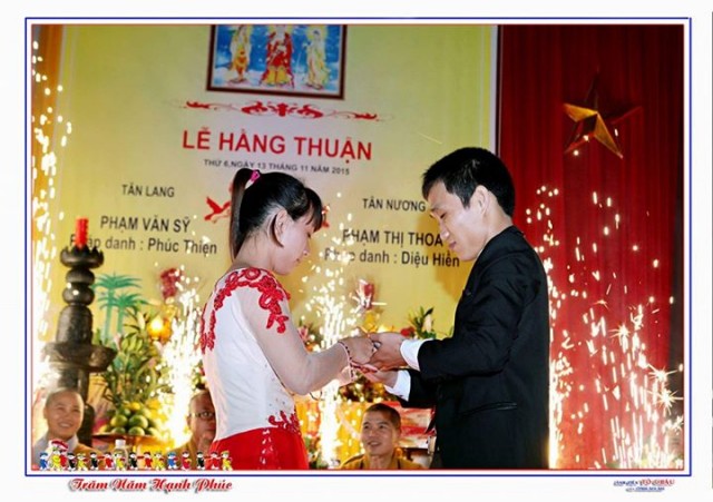 Dưới sự chứng minh cầu nguyện của chư tôn đức, sự hiện diện rất mực trang nghiêm của quý Phật tử chùa Bụt Mọc cùng đông đảo thân bằng quyến thuộc, hai bạn đã kết duyên vợ chồng. Chúc tân lang, tân nương “Trăm năm tình viên mãn – Bạc đầu nghĩa phu thê”.