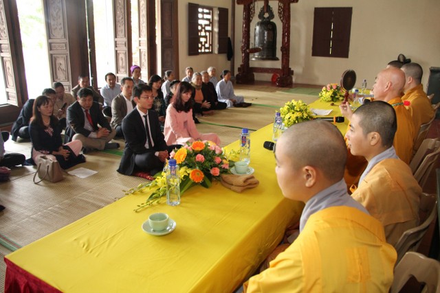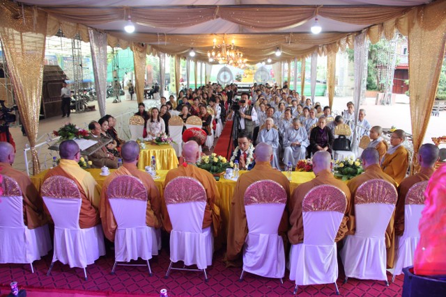 Trong niềm hoan hỷ của buổi lễ, Thượng tọa trụ trì đã có lời chia sẻ với tân lang, tân nương về phương pháp xây đắp, giữ gìn hạnh phúc gia đình trên cơ sở giáo lý nhà Phật. Năm điều Đức Phật dạy về bổn phận của vợ và chồng trong kinh Thiện Sinh, tin Tam Bảo, hướng gia đình đến đời sống đạo đức, thiện lành dựa trên nền tảng tam quy, ngũ giới là đôi điều quý thầy nhắn nhủ tới đôi vợ chồng trẻ. Chư tôn đức và toàn thể đại chúng đã thành kính làm lễ niêm hương bạch Phật, cầu an cho hai bạn.