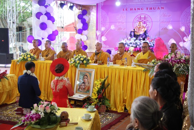 Kết thúc buổi lễ, đại diện hai bên gia đình đã có lời cảm tạ, cảm niệm công đức của chư Tôn đức và toàn thể đạo tràng; không quên nhắc nhở hai bạn: “Là bậc làm cha, làm mẹ ai cũng mong muốn con mình sinh ra được vẹn toàn, chăm lo cho con đủ đầy, không quản nắng mưa khó nhọc, lớn lên cho đi học để mong con thành người, lo cho con công ăn việc làm nên danh nên phận. Đến khi trưởng thành, xây dựng hạnh phúc riêng, cha mẹ nào cũng mong muốn con tìm được ý trung nhân, cùng nhau xây dựng gia đình êm ấm, hòa thuận, có thủy có chung, hiếu thảo với cha mẹ hai bên, nối dõi tông đường. Các con, các cháu biết yêu thương nhau là niềm hạnh phúc vô biên của cha mẹ. Chính vì lẽ đó, hôm nay cha mẹ và gia đình hai bên đã xin phép chư tôn đức cử hành lễ hằng thuận tại chùa Từ Xuyên để cầu mong đức Phật, Tam Bảo gia hộ độ trì cho cuộc sống gia đình các con được bình an, hạnh phúc.