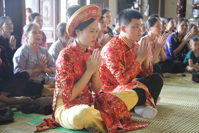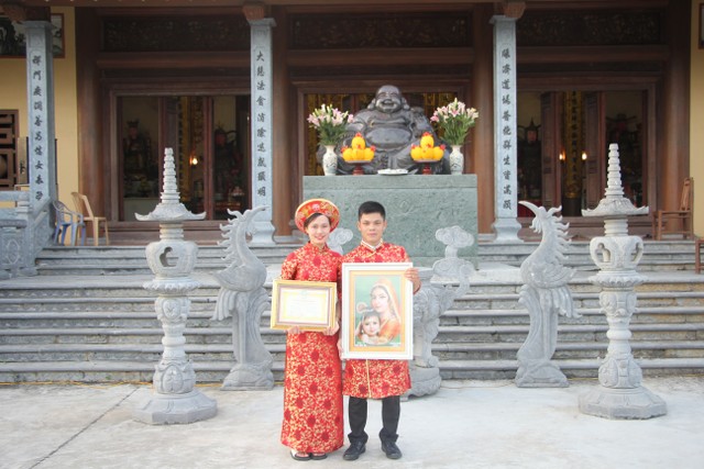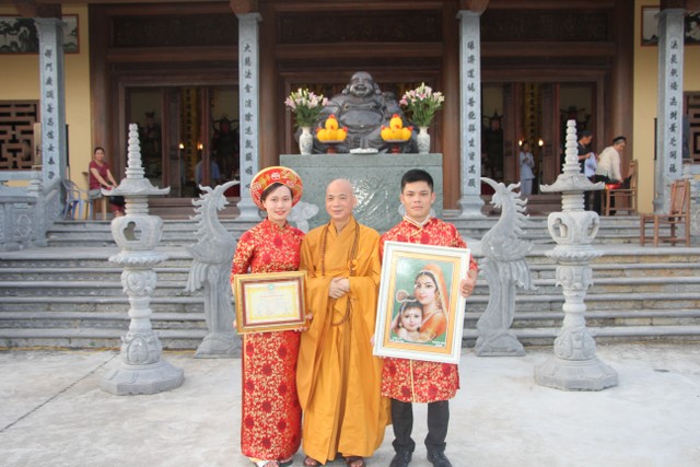 Buổi lễ còn có sự hiện diện họ hàng nội ngoại và bạn bè hai bên gia đình, chúc tân lang tân nương “Sắt cầm hòa hợp – Loan phụng sum vầy – Bách niên giai lão”. Đây là lễ hằng thuận đầu tiên được tổ chức tại chùa Đại Bi.