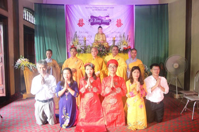 Buổi lễ còn có sự hiện diện họ hàng nội ngoại và bạn bè hai bên gia đình, chúc tân lang tân nương “Sắt cầm hòa hợp – Loan phụng sum vầy – Bách niên giai lão”. Đây là lễ hằng thuận đầu tiên được tổ chức tại chùa Phúc Long.