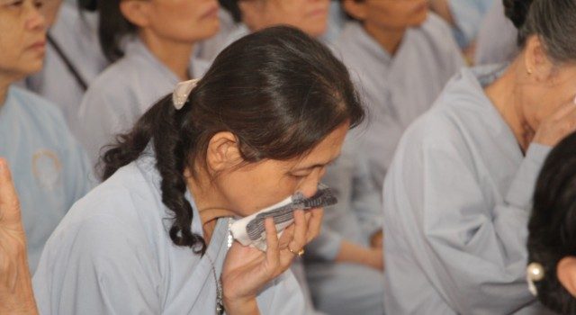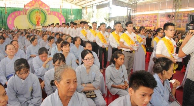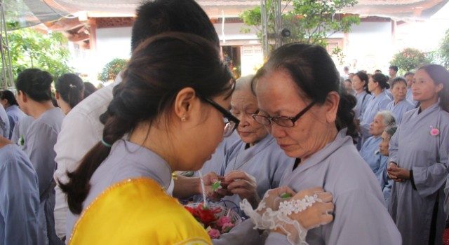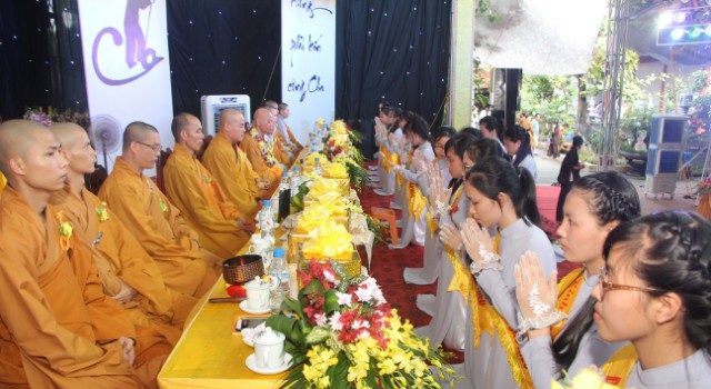 Chương trình buổi lễ gồm các phần: phút nhập từ bi quán tưởng niệm, dâng lục cúng dường, nghi thức cài hoa hồng, cảm niệm mùa Vu Lan, tác bạch dâng y chư tôn đức chứng minh. Các nghi thức diễn ra trong không khí trang nghiêm, thành kính. Đặc biệt là phần nghi thức cài hoa hồng, những giọt nước mắt xúc động của các bạn trẻ khi nghe ý nghĩa của bông hồng cài áo. Phải chăng lúc này, khi đứng trong không khí ấm áp của buổi lễ và suy tưởng về Cha, về Mẹ, các bạn mới phần nào hối hận những lỗi lầm mình trót gây ra, làm cho Cha Mẹ phải buồn lòng. Hay đó là giọt nước mắt bất hạnh của những người con không còn được sống trong tình yêu thương của Cha của Mẹ! Những nỗi bất hạnh ấy, làm cho mỗi người có mặt trong buổi lễ hôm nay không khỏi hối hận, ngậm ngùi.