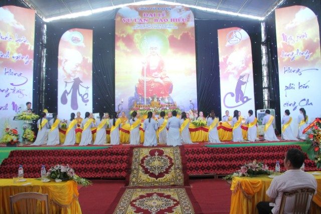 Bước theo gương hiếu của Mục Kiền Liên, cũng như theo lời Phật dạy rằng hạnh hiếu là hạnh Phật, chúng ta tôn thờ người mẹ chung là mẹ Việt Nam, tôn thờ nhiều đời cha mẹ của chúng ta đã khuất, kính trọng cha mẹ hiện tiền đang sống với chúng ta, cũng như những người hiện hữu xung quanh ta. Thiết nghĩ có được tâm hiếu kính cha mẹ mình và tâm hồn rộng mở kính trọng mọi người như cha mẹ, đồng thời thể hiện tâm cao quý ấy thành những việc làm thiết thực mang an vui, lợi lạc đến cha mẹ và mọi người là cách báo hiếu báo ơn tốt nhất trong mùa Vu Lan.