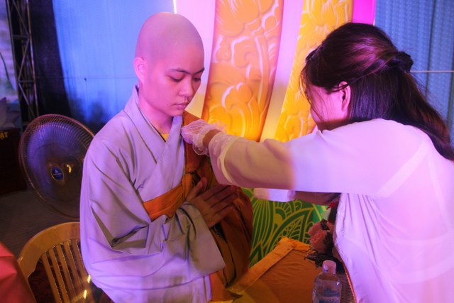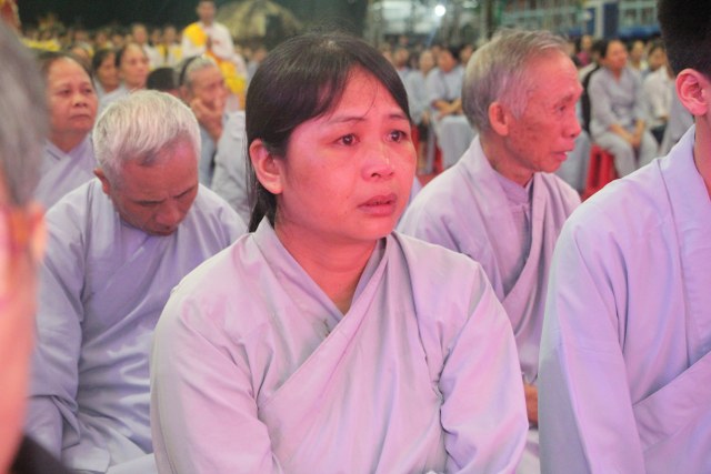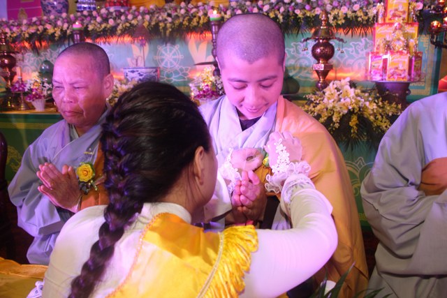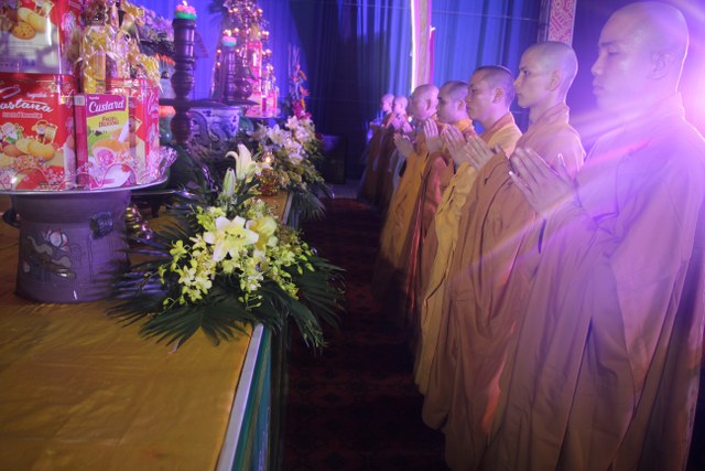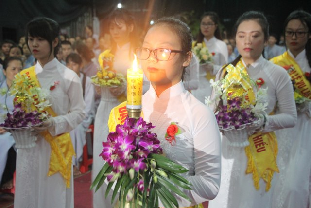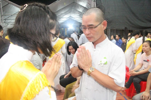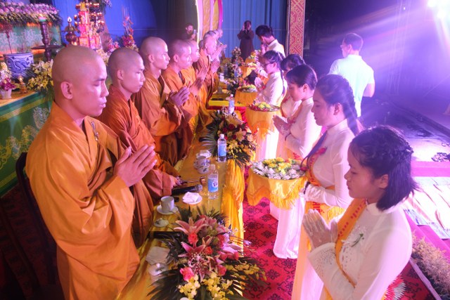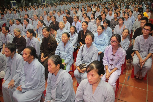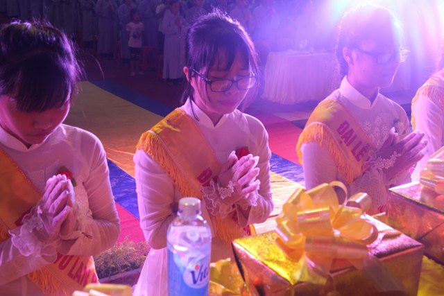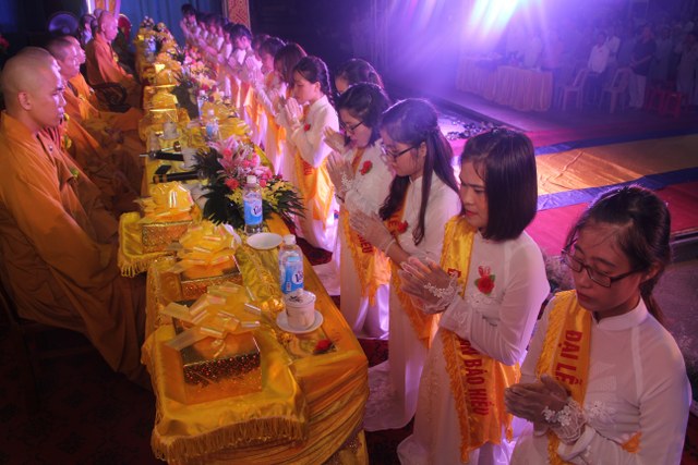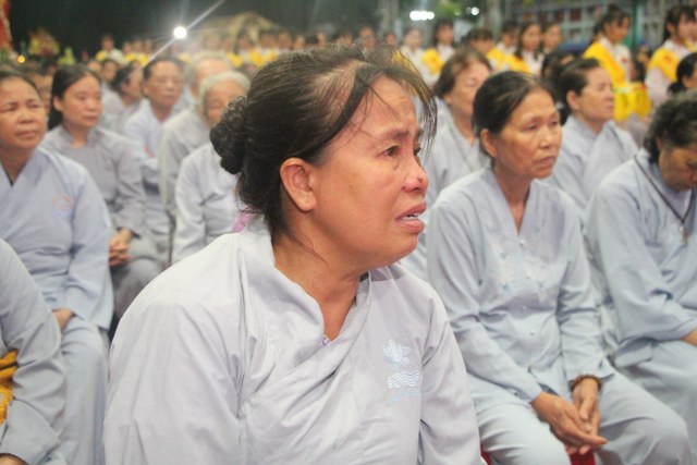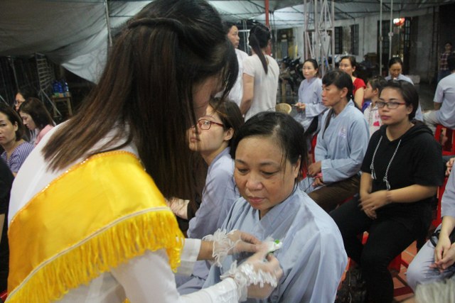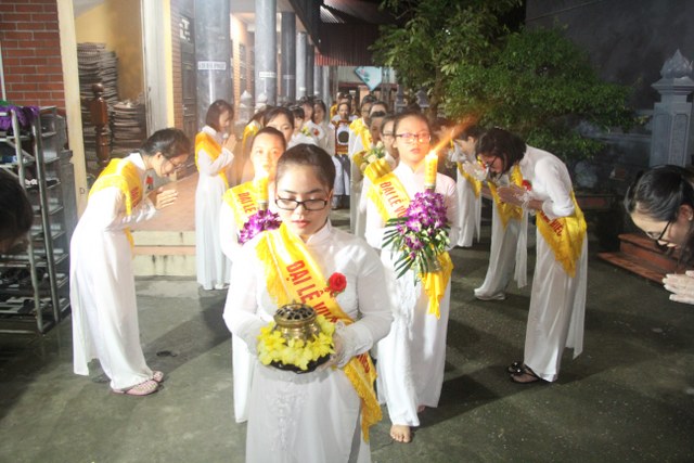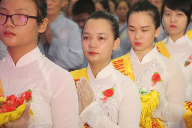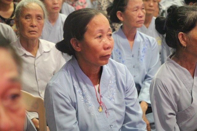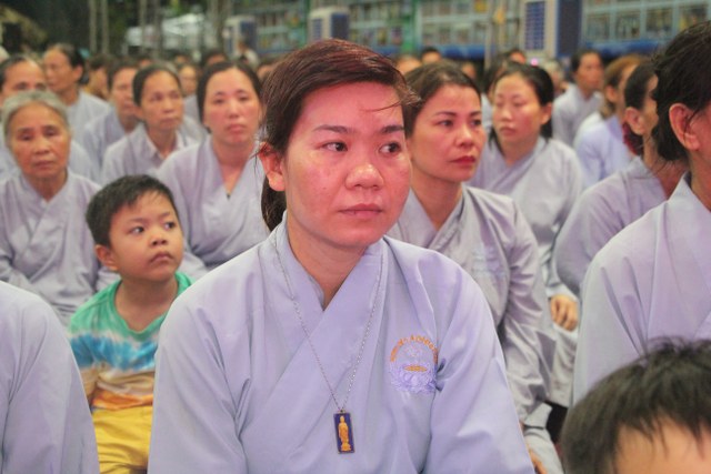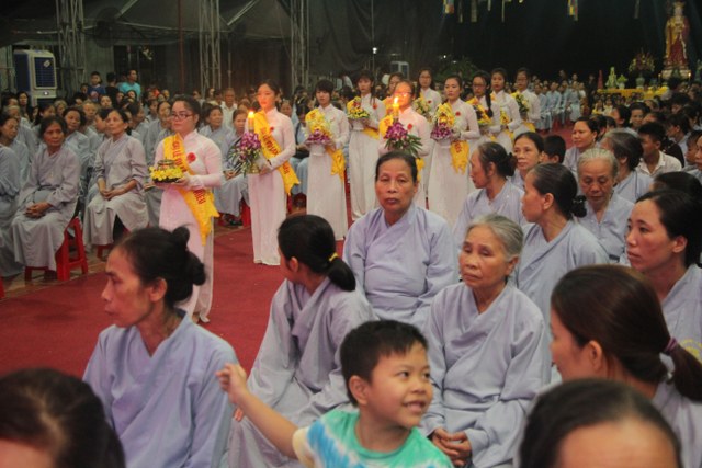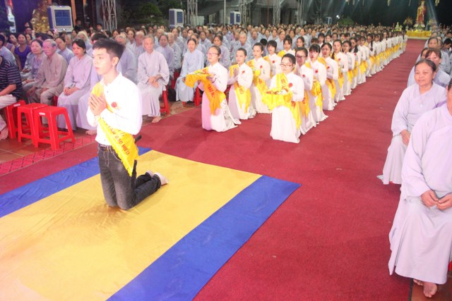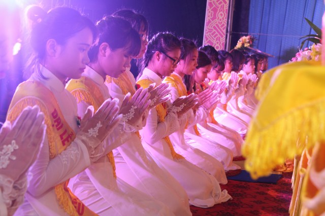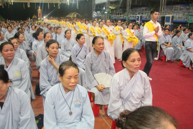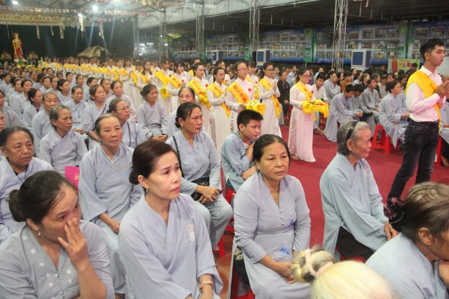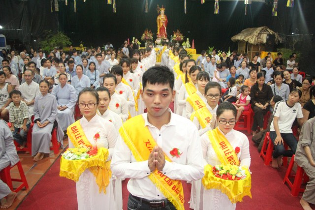 Chương trình buổi lễ gồm các phần: niêm hương bạch Phật, dâng lục cúng dường, nghi thức cài hoa hồng, cảm niệm mùa Vu Lan, tác bạch dâng y chư tôn đức chứng minh. Các nghi thức diễn ra trong không khí trang nghiêm, thành kính. Đặc biệt là phần nghi thức cài hoa hồng, những giọt nước mắt xúc động của các bạn trẻ khi nghe bạn Nguyễn Lan diễn đọc ý nghĩa của bông hồng cài áo và hồi tưởng về người cha quá cố. Phải chăng lúc này, khi đứng trong không khí ấm áp của buổi lễ và suy tưởng về Cha, về Mẹ, các bạn mới phần nào hối hận những lỗi lầm mình trót gây ra, làm cho Cha Mẹ phải buồn lòng. Hay đó là giọt nước mắt bất hạnh của những người con không còn được sống trong tình yêu thương của Cha của Mẹ! Những nỗi bất hạnh ấy, làm cho mỗi người có mặt trong buổi lễ hôm nay không khỏi hối hận, ngậm ngùi.