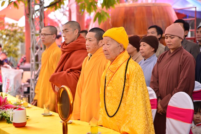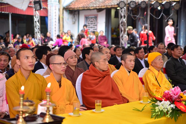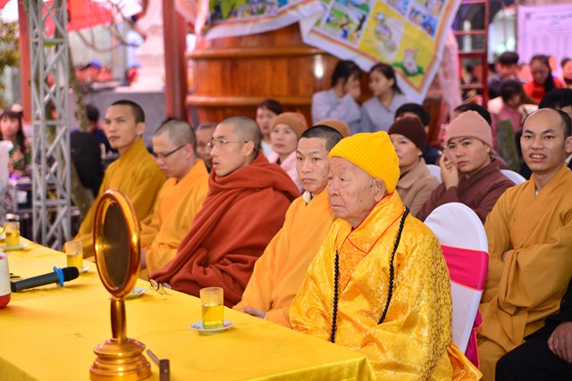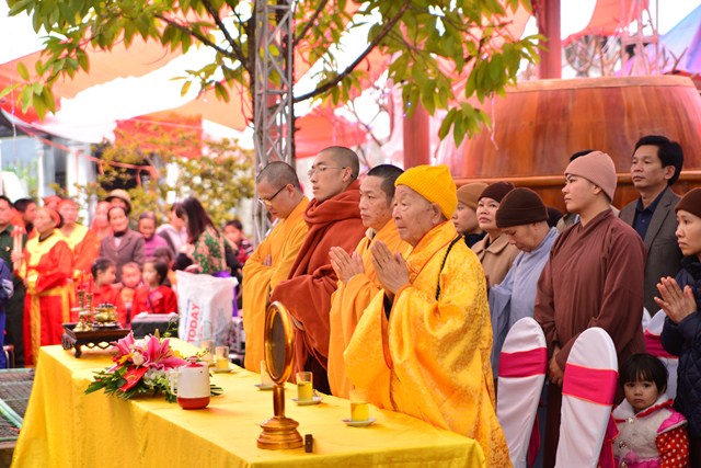 Quang lâm chứng minh buổi lễ có sự hiện diện của HT. Thích Thanh Dục – Ủy viên thường trực Hội đồng chứng minh TƯ GHPGVN, chứng minh tối cao BTS GHPGVN tỉnh Thái Bình; TT. Thích Thanh Phương – Trụ trì chùa Trung Đạo, tỉnh Nam Định; Đại đức Thích Thanh Quang – Trụ trì chùa Keo, huyện Vũ Thư, tỉnh Thái Bình, bản tự chùa Viên Quang, trưởng BTC đại lễ cùng đông đảo  chư tôn đức tăng ni trong và ngoài tỉnh Thái Bình.
