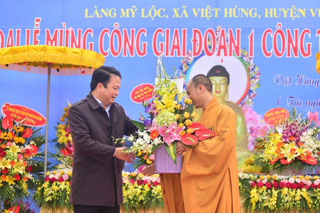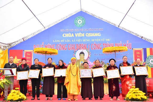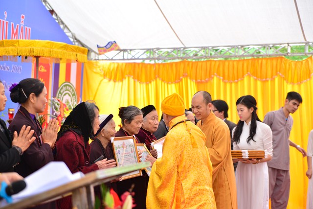 Nhân dịp này,  Ban tổ chức đã trao bằng tuyên dương công đức cho các tổ chức, cá nhân có thành tích đóng góp tịnh tài, tịnh vật cho công trình xây dựng mang tính chất tín ngưỡng, văn hóa, tâm linh đầy ý nghĩa này và đón nhận những lẵng hoa chúc mừng của chính quyền địa phương, các ban ngành đoàn thể, các cơ quan xí nghiệp cũng như các Phật tử, nhân dân địa phương.
