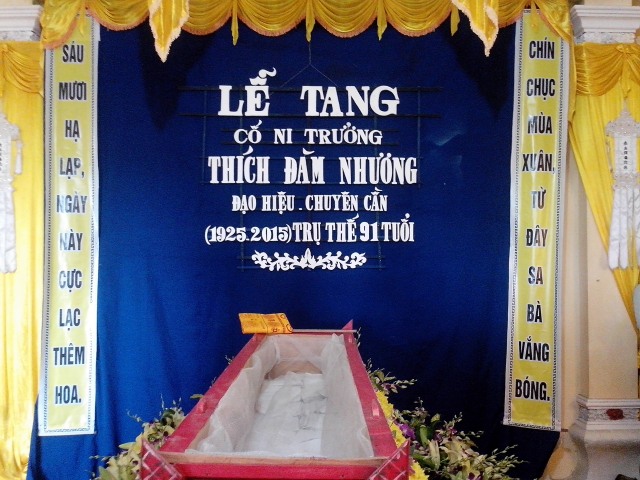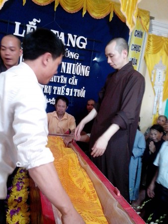 Theo cáo phó của BTS GHPGVN huyện Quỳnh Phụ cùng môn đồ pháp quyến, chiều ngày 04/04/2015 (16/02/Ất Mùi), tại chùa Châu Luân (thôn Khả Lang, xã Quỳnh Châu, Quỳnh Phụ) đã diễn ra lễ nhập liệm và cung thỉnh nhục thân cố Ni trưởng nhập kim quan.
