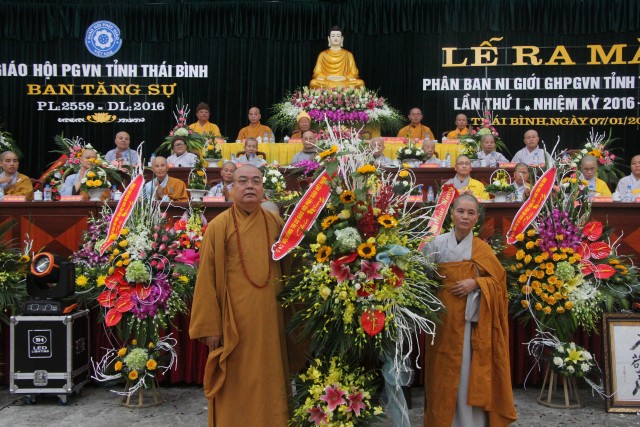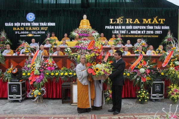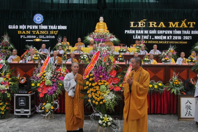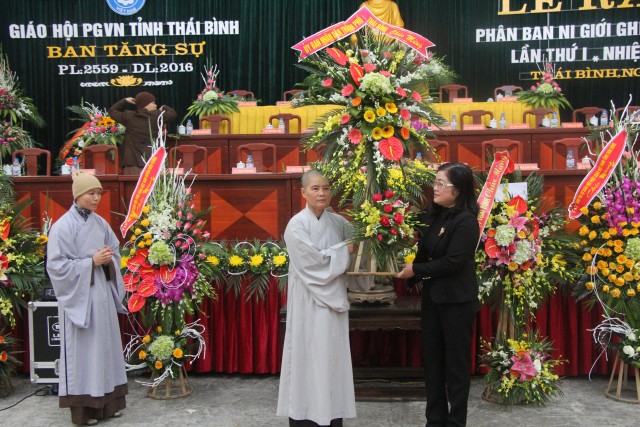 Tại buổi lễ, ông Phạm Đức Cải, Phó Giám đốc Sở Nội vụ, Trưởng BTG tỉnh thay mặt lãnh đạo tỉnh phát biểu chúc mừng tân Phân ban Ni giới tỉnh Thái Bình. Nhất trí với Hội nghị đã sáng suốt suy cử thành phần nhân sự Phân Ban Ni giới trong nhiệm kỳ mới 2016-2021, ông tin tưởng các thành viên trong niệm kỳ mới có khả năng tăng cường đoàn kết, hòa hợp, củng cố mở rộng và trang nghiêm giáo hội xiển dương các giá trị đặc sắc của Phật giáo, mở rộng và tăng cường mối quan hệ đồng đạo, trao đổi kinh nghiệm trụ trì và nâng cao kiến thức hiểu biết Pháp luật để hành đạo sao cho “Tốt đạo – đẹp đời”. Thường xuyên tu tập để “Thúc Liễn Thân Tâm’ và tăng cường “Giới – Định – Tuệ”