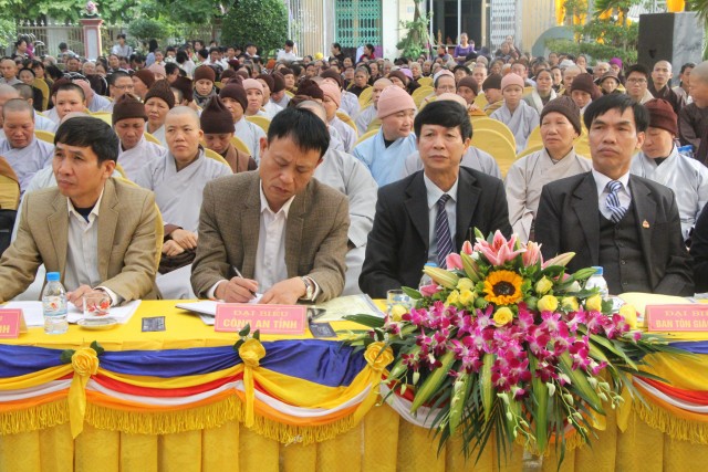 Về phía đại biểu lãnh đạo tỉnh có ông Trần Quang Minh, Phó Trưởng ban dân vận tỉnh ủy; ông Phạm Đức Cải, Phó Giám đốc Sở Nội vụ, Trưởng BTG tỉnh; bà Nguyễn Thị Minh Hiền Phó Chủ tịch Hội Phụ nữ tỉnh; ông Đinh Văn Hoạt, Phó Trưởng phòng PA88 Công an tỉnh; ông Phan Doãn Hợp, Phòng an ninh xã hội Công an TP.Thái Bình cùng đại diện lãnh đạo các cơ quan ban ngành, chính quyền tỉnh cùng về tham dự.