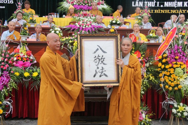 TT.Thích Thanh Hòa, thay mặt cho ban Tăng sự PG tỉnh trao quyết định nhân sự Phân ban Ni giới tỉnh Thái Bình 2016 – 2021 bao gồm 8 Ni trưởng, Ni Sư chứng minh; đứng đầu là Ni trưởng Thích Đàm Thanh, 23 thành viên chính thức do Ni sư Thích Đàm Thoa làm Trưởng phân ban Ni giới.