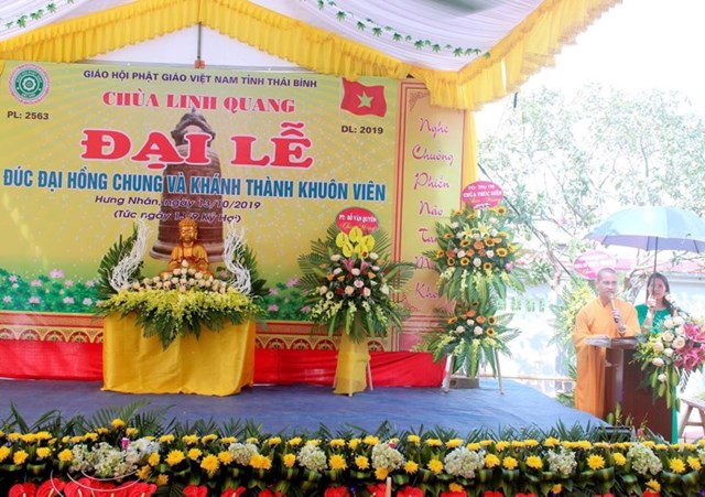 Sáng ngày 13/10/2019 ( nhằm ngày rằm tháng 9 năm Kỷ Hợi), tại khu Châu, trị trấn Hưng Nhân, huyện Hưng Hà, tỉnh Thái Bình đã long trọng diễn ra Lễ rót đồng đúc đại hồng chung nặng 500kg và lễ cắt băng khánh thành khuôn viên chùa Linh Quang.