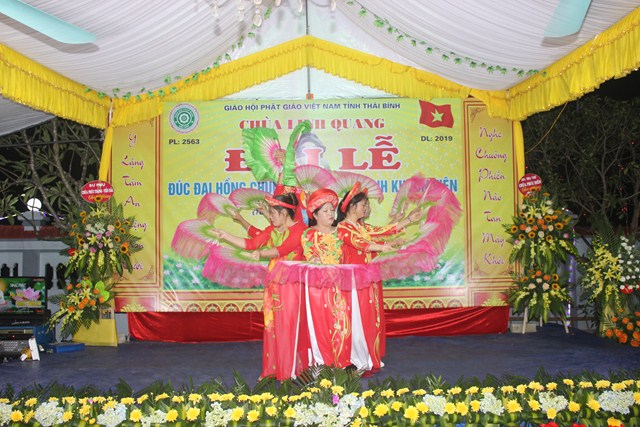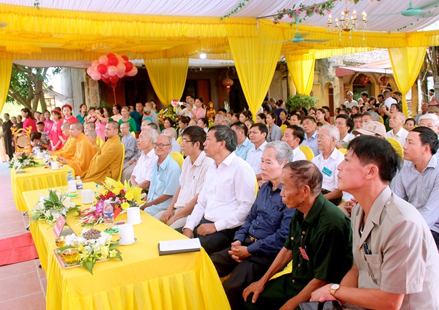 Quang lâm tham dự buổi lễ có sự hiện diện của Đại đức Thích Nhựt Phú – Trụ trì chùa Phúc Diên, huyện Quỳnh Phụ, tỉnh Thái Bình; Ni sư Thích Đàm Đài – Trụ trì chùa Phúc Thành, huyện Tiền Hải, tỉnh Thái Bình; Sư thầy Thích Diệu Minh – Trụ trì chùa Linh Quang, trưởng BTC đại lễ, cùng chư tôn đức Tăng Ni trụ trì một số chùa trên địa bàn tỉnh Thái Bình và một số tỉnh thành lân cận.