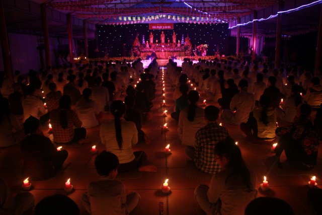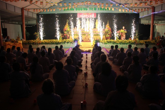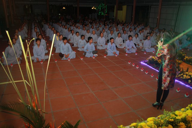 Tại buổi lễ, chư tôn đức, Phật tử đã thành kính thắp sáng đuốc tuệ do Thượng tọa trụ trì khởi điểm, lắng nghe lại 48 đại nguyện của Pháp tạng Tỳ – khiêu. Thượng tọa đã có lời đạo từ tới toàn thể quý Phật tử về tham dự, khuyến tu pháp môn niệm Phật, cầu sinh Tây Phương.