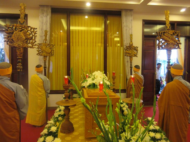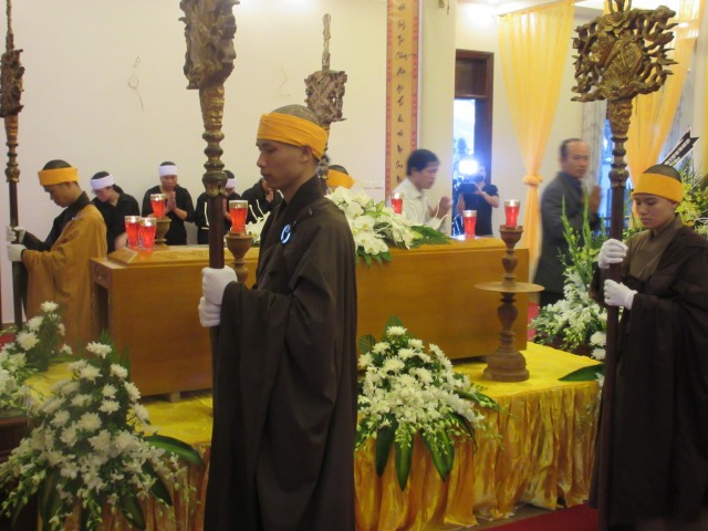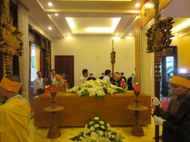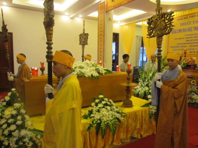 Sau khi hứa khả lời cầu thỉnh của pháp quyến, chư tôn đức đã thành kính niêm hương bạch Phật, cử hành lễ nhập liệm. Trong tiếng niệm Phật trầm hùng, chư tôn đức cùng Phật tử đã thương tiếc cung thỉnh nhục thân Đại Đức nhập kim quan. Kim quan được tôn trí tại Tổ đường chùa Thiên Qúy. Tại buổi lễ, chư Tăng chứng minh, cử hành lễ thành phục, phát tang và dâng hương tưởng niệm vị Cao Tăng đạo hạnh của Phật giáo Thái Bình nói chung, Phật giáo Đông Hưng nói riêng. Được biết, chương trình lễ tang Đại Đức diễn ra từ 13h00 ngày 05/11 đến 22h00 cùng ngày. Sau đó, ngày 06/11, chư tôn đức BTS PG tỉnh, BTS PG huyện Đông Hưng cùng môn đồ pháp quyến tổ đình Trừng Mại sẽ làm lễ tưởng niệm, cung thỉnh kim quan nhập bảo tháp trong khuôn viên chùa Thiên Qúy.