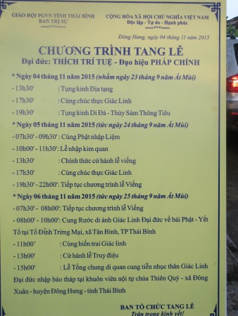 Theo cáo phó của BTS GHPGVN tỉnh cùng môn đồ pháp quyến, sáng ngày 05/11/2015 (24/09/Ất Mùi), tại chùa Thiên Qúy, thôn Ký Con, xã Đông Xuân, huyện Đông Hưng, tỉnh Thái Bình đã diễn ra lễ thành phục, cung thỉnh nhục thân cố Đại Đức nhập kim quan.
