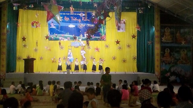 Trong không gian nhỏ bé ấm áp nơi chốn thiền môn giữa lòng làng quê, tiếng trống tùng rinh với những điệu múa lân, những bài hát, câu đố vui và sự xuất hiện của Chị Hằng, chú Cuội đã mang lại niềm hạnh phúc cho tất cả các em nhỏ tham dự chương trình “Đêm hội trăng rằm”.