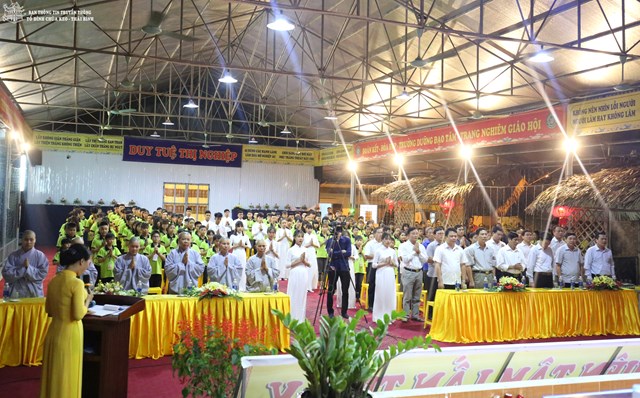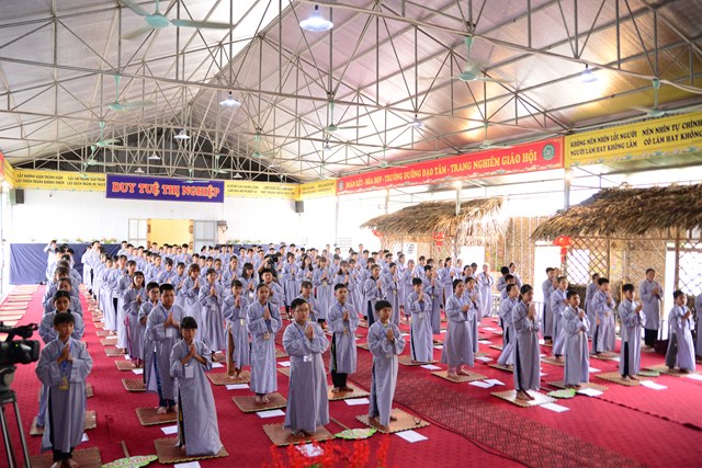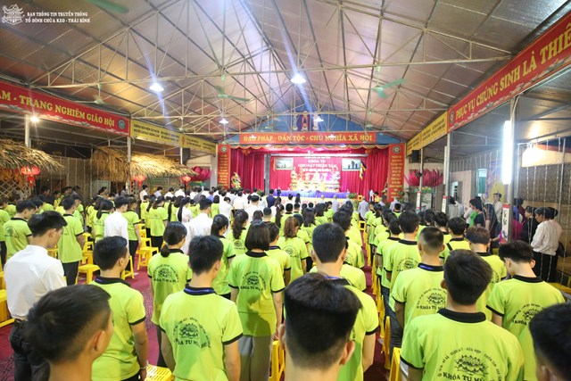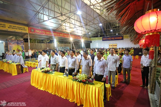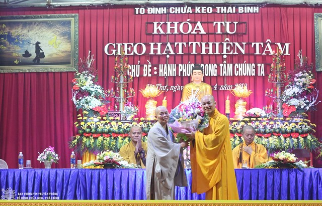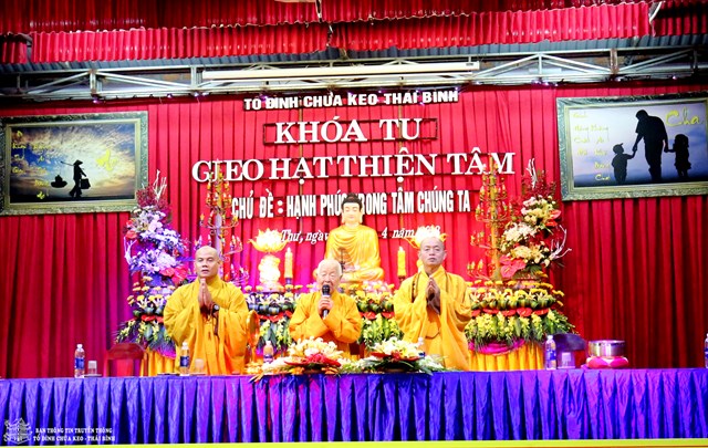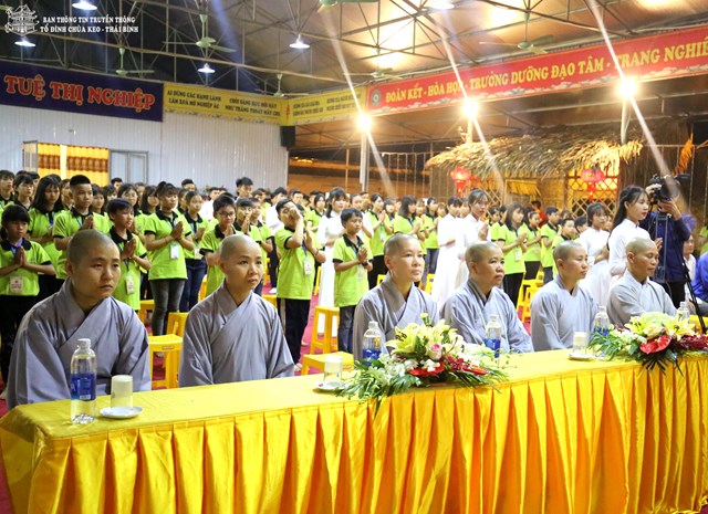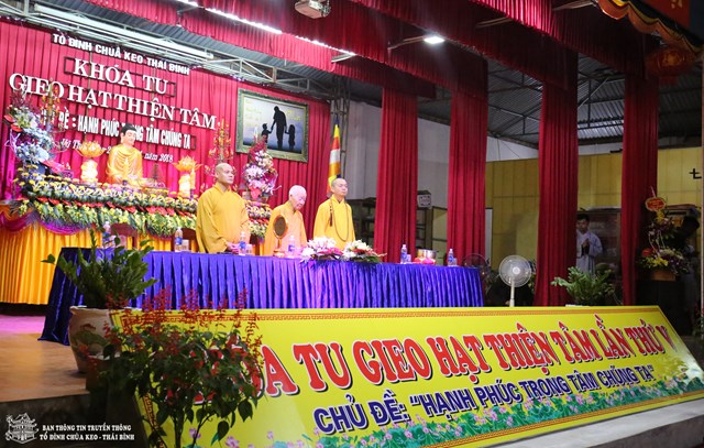 Quang lâm chứng minh buổi lễ khai mạc có sự hiện diện của HT. Thích Thanh Dục – Thành viên HĐCM TƯ GHPGVN, ủy viên HĐTS TƯ GHPGVN, chứng minh tối cao BTS GHPGVN tỉnh Thái Bình; TT. Thích Thanh Hòa – Ủy viên HĐTS TƯ GHPGVN, trưởng BTS GHPGVN tỉnh Thái Bình; Đại đức Thích Thanh Quang – Trụ trì tổ đình chùa Keo, trưởng BTC khóa tu; Đại đức Thích Minh Luận – Chủ nhiệm khóa tu, Sư thầy Thích Đàm Hoa – Phó BTS GHPGVN huyện Vũ Thư cùng chư tôn đức tăng ni trong và ngoài huyện.