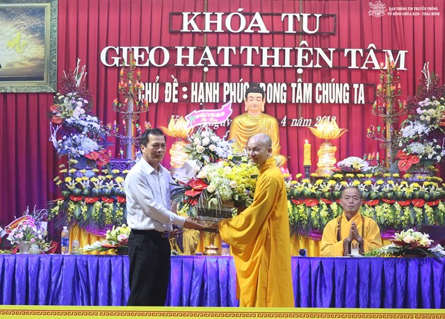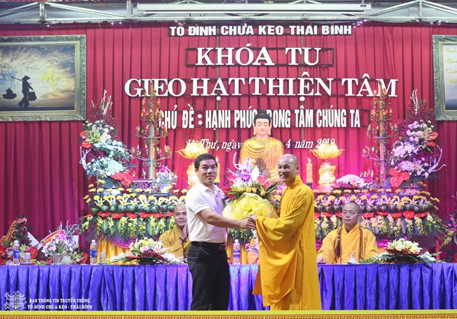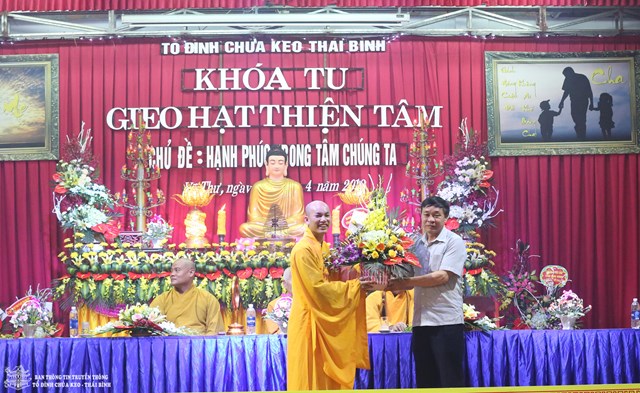 Về phía quan khách chính quyền có sự hiện diện của ông: Trần Quang Minh – Phó trưởng Ban dân vận tỉnh Thái Bình; ông: Phan Văn Thưởng – UB MTTQVN tỉnh Thái Bình; ông: Bùi Văn Thương – GĐ trung tâm văn hóa thông tin huyện Vũ Thư, trưởng Ban quản lý di tích chùa Keo; ông: Nguyễn Văn Thành – Phó trưởng Công an huyện Vũ Thư; ông: Trần Xuân Chiến – Đội trưởng đội an ninh huyện Vũ Thư; ông: Trần Đức Toản – Bí thư đoàn thanh niên huyện Vũ Thư, cùng các ông bà đại diện cho các cấp ủy đảng thuộc HĐND, UBND, UB MTTQVN xã Duy Nhất, các vị phụ huynh học sinh, các Phật tử đang tu học tại chùa Keo và gần 200 em thiện sinh về tham dự khóa tu.