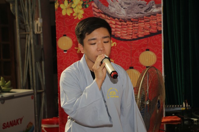 Trong thời khóa buổi sáng, quý Phật tử đạo tràng và hội viên đã giao lưu văn nghệ. Sau đó là thời nghe pháp do Thượng tọa trụ trì chia sẻ. Thông qua những chia sẻ của Thầy về đề tài “Người Phật tử sống yêu thương”, đại chúng nhận thức được muốn có hạnh phúc đời sống không gì hơn mỗi người biết quy y Tam Bảo, thực hành năm giới, biết chia sẻ yêu thương tới mọi người, mọi loài ai ai cũng được lợi lạc.